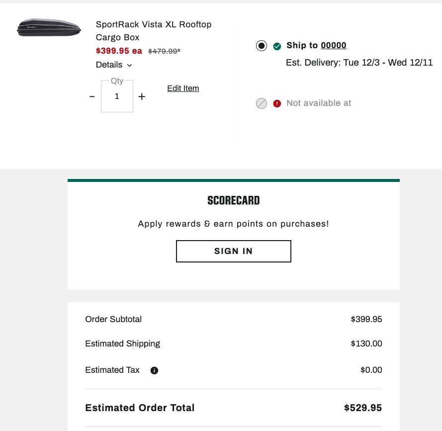 比如这个cargo box,直接买有$130的大件商品运费。