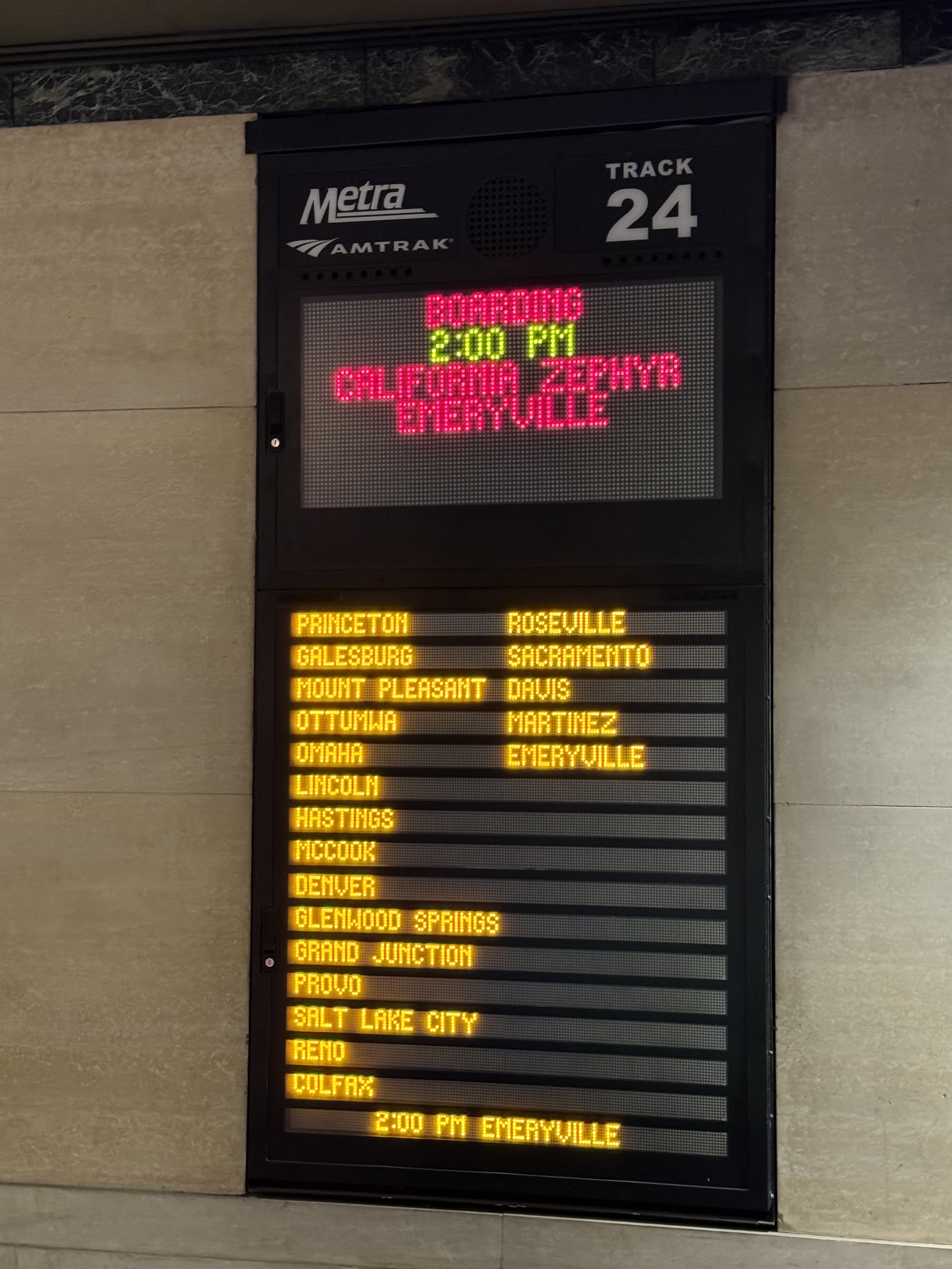 )。列車走線是 Chicago 出來之後沿着 IL, IA, NE 大農村直線前進, 然後上山經過 CO, UT, NV 抵達彎曲, 總的來說山上的景色最爲值得觀賞 (過了 Denver 之後).