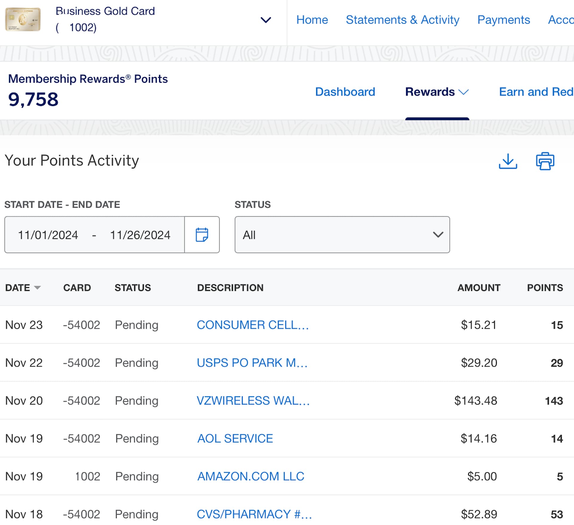 前几天开了biz gold 10k/200kMR nll,秒过以后拿到卡号,但是online account报错加不了。当时没在意,这几天发现卡加到account里了。但是离奇的是,MR居然有显示的积分,还能查看到之前的MR积攒和消费activity,这里面显示的卡号和我的对不上,而且消费记录也不是我的,所以肯定是别人的卡。