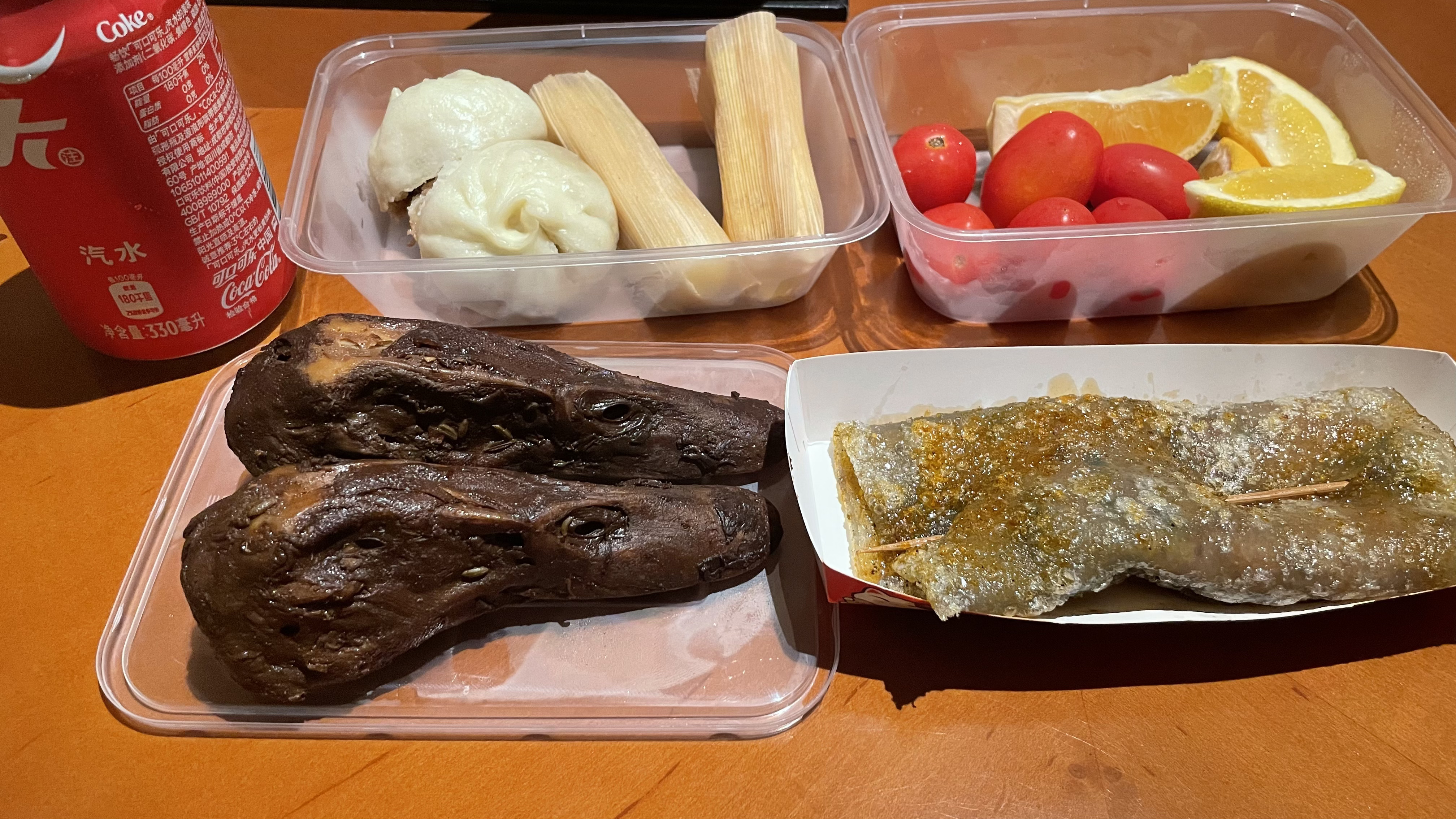 打包的早餐(是的允许打包)搭配楼下的烤苕皮+鸭头
