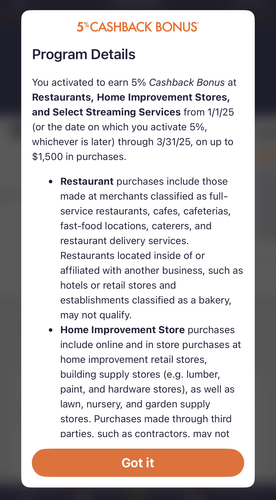 Restaurants, Home Improvement Stores, and Select Streaming Services