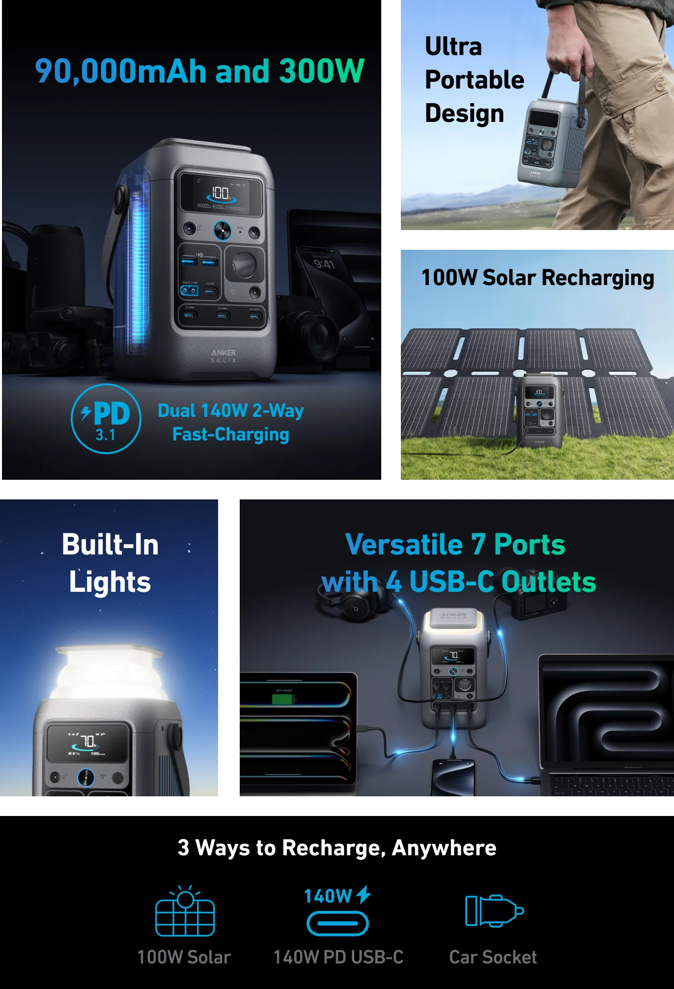 Anker C300X DC,与 Anker 家旗舰充电宝一个价格,但是规格和性能都强了太多,对于我这种外出就只喜欢带 USB 线的人来说,这个远比带 inverter 的 Power Station 方便,