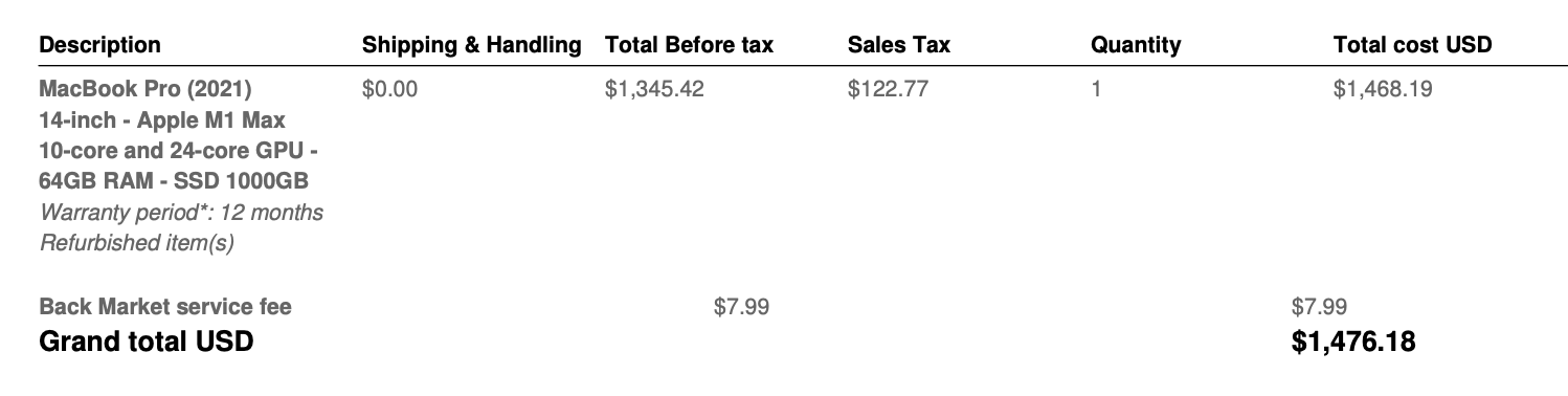 东西还挺不错的,电池 90 cycle,100% 寿命,外观看上去几乎全新,唯一的问题是屏幕上有一点划痕。但是这个电脑最大的问题是——没啥鸟用,毕竟家里有太多的笔记本,公司有公司的电脑,也完全不需要这种性能,跟自己上网用的 M1 Pro 可以说是毫无区别,甚至电池还因为 Max 愈发缩水。然后去苹果官网一查, Trade in value 不过 1k 出头,总之感觉就是鸡肋,食之无味,弃之可惜。