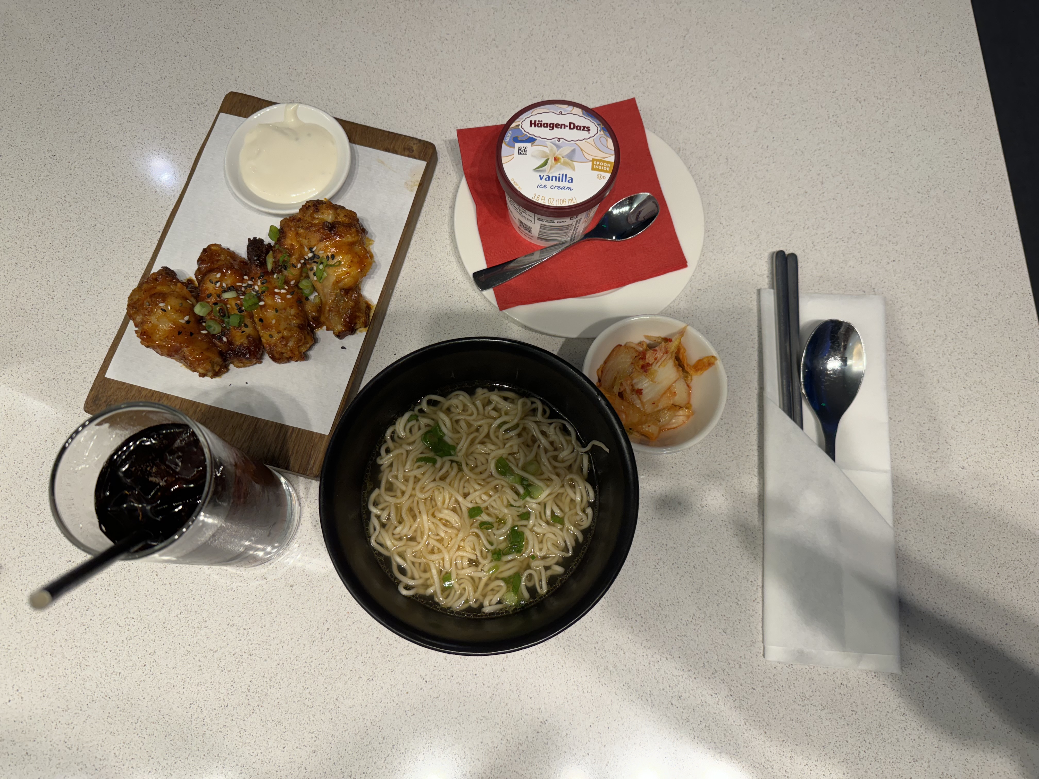 lounge很简陋,类似美国三大航的Club,喝的去吧台,吃的和shower要通过一个QR code落单,STARLUX客户会给一个神秘代码,结账时候免费。