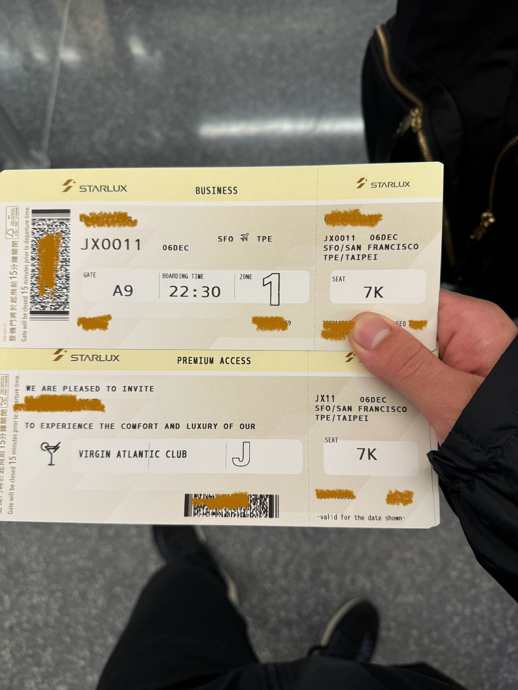 验明正身,SFO-TPE,boarding pass + Virgin Atlantic Clubhouse invitation
