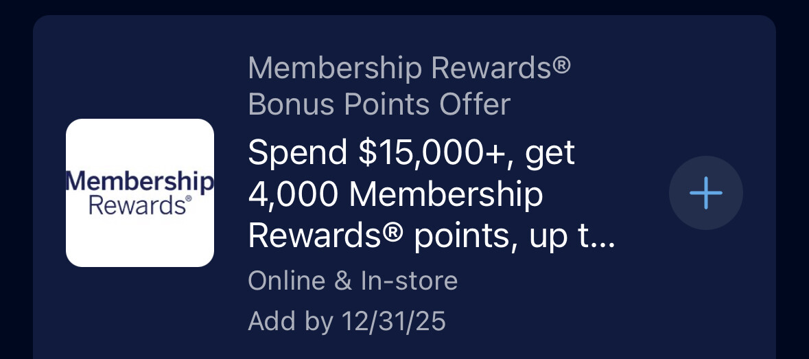 今年收入一百多万mr,不敢和大佬们比,但自己已经很满意了。主要靠amex给我发的一些巨好的spending offer,比如图里这样的,很多张卡都有类似的offer。