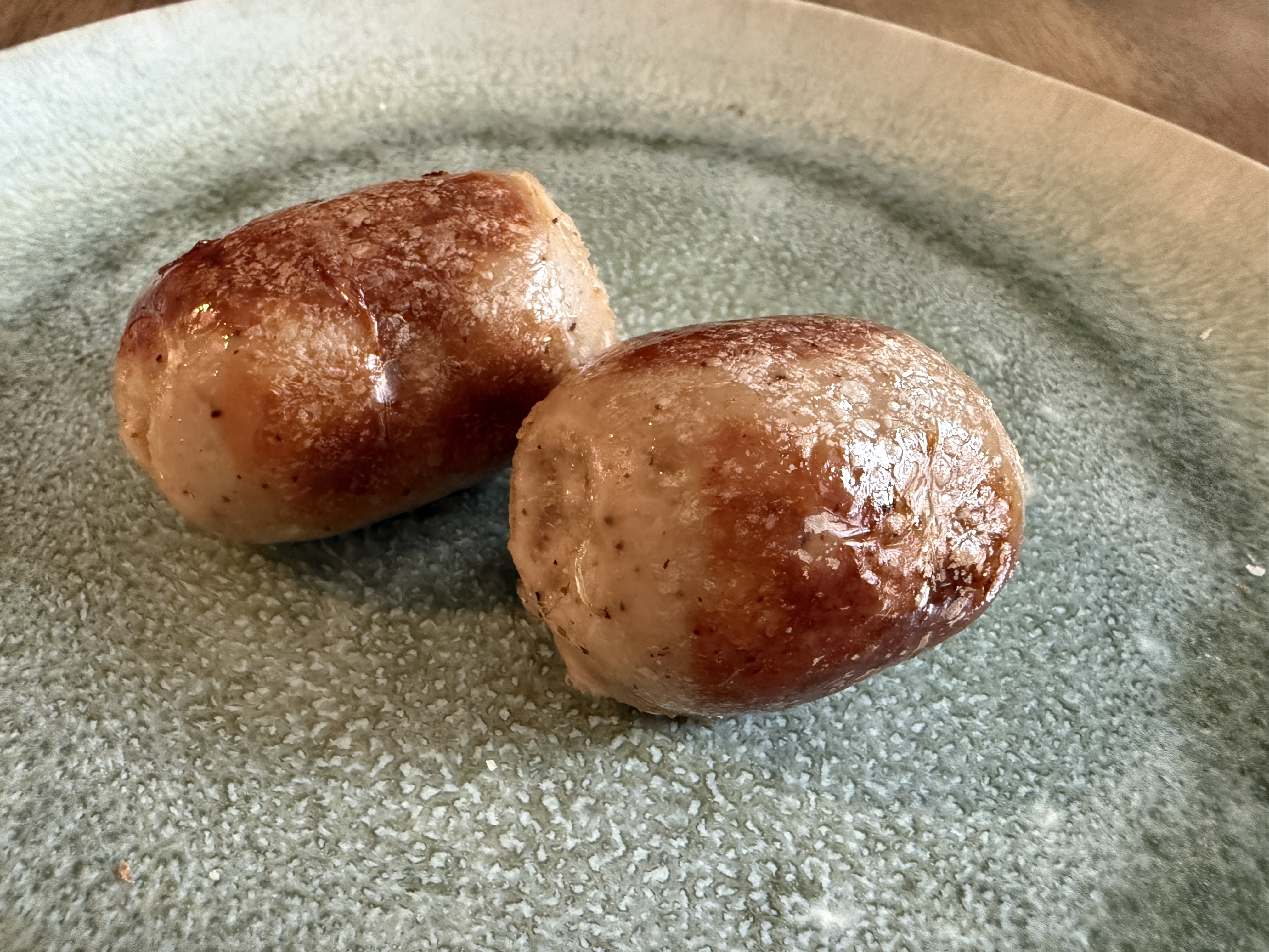 之后要吃的的时候 拿出来加热 用空气炸锅或者用锅煎到焦黄就行。 肉肠口口爆浆,喜欢吃辣可以撒上辣椒面(推荐六婆) ![]()