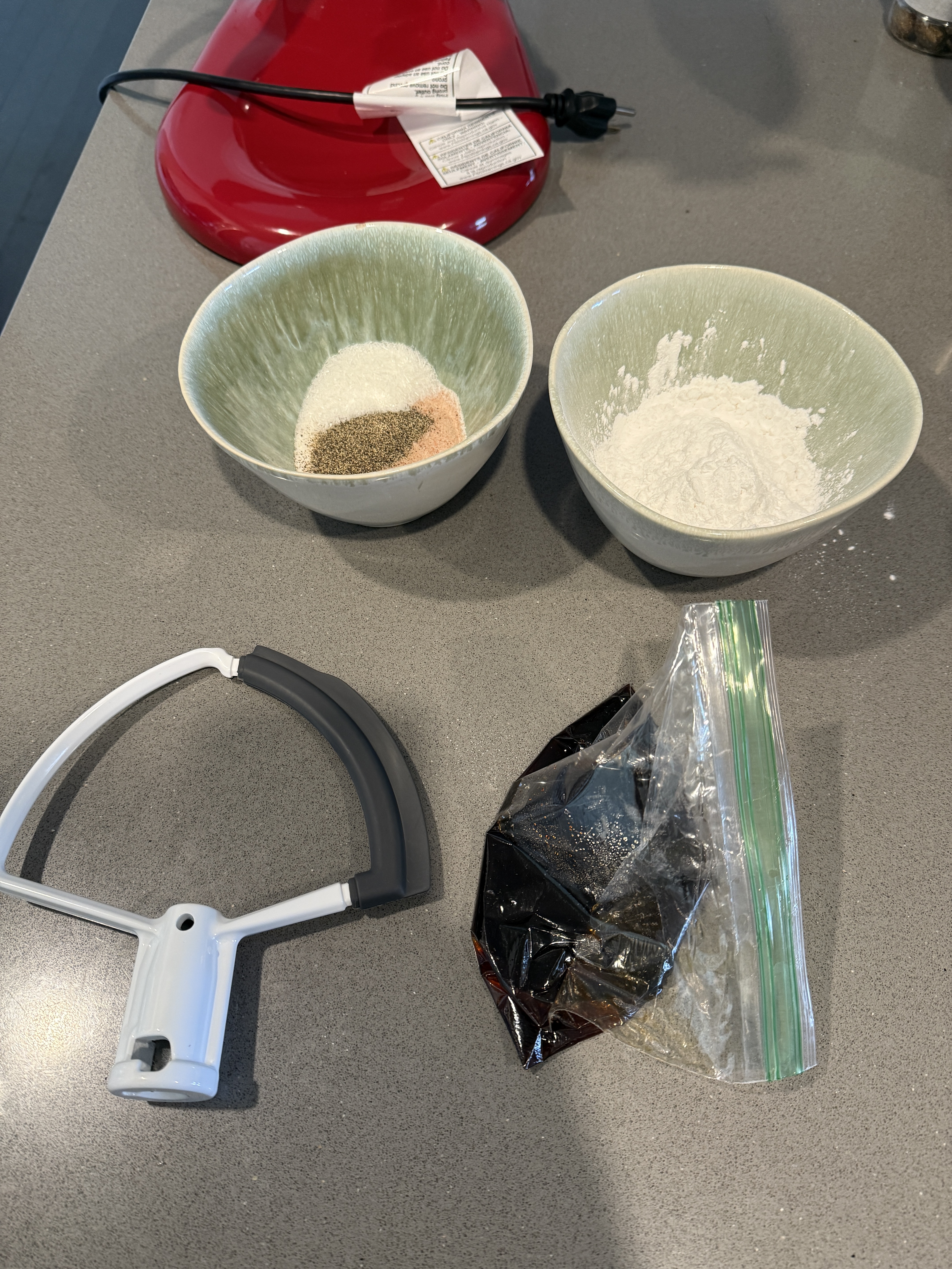 等待的时间把其他配料 称重 并且准备好(如果喜欢黑椒口味可以适当增加黑胡椒的量,如果喜欢蒜蓉口味就加15g蒜蓉,如果喜欢玉米 肉馅里也可以添加玉米,当然芝士也是可以加的