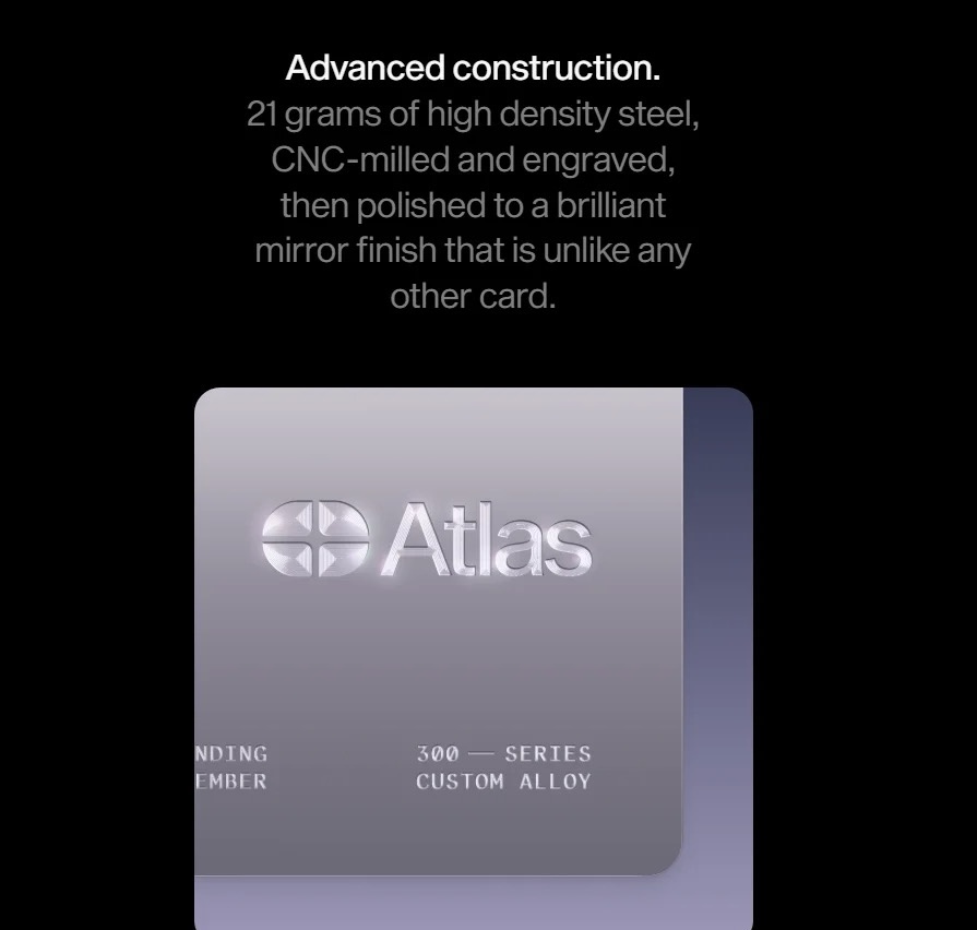 Atlas 还提供一款面向更广泛用户群体的信用卡,月费为8.99美元,或选择年费89美元的计划。