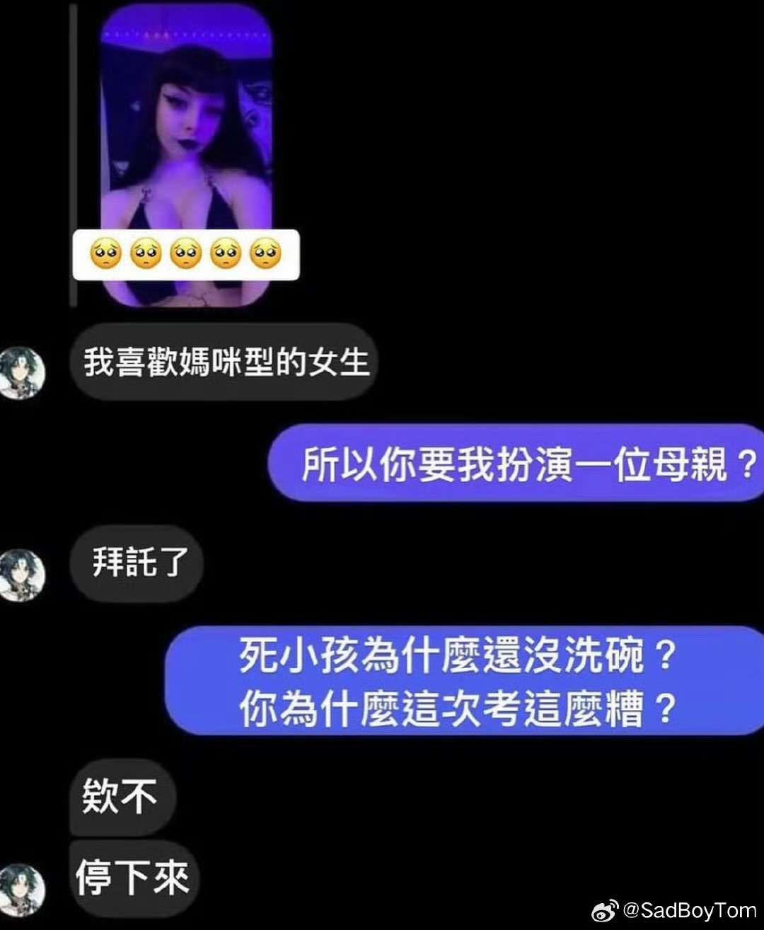听我ld说确实网上见过有这种叫妈妈的…我说,那你要不要试试,他说“不可能“