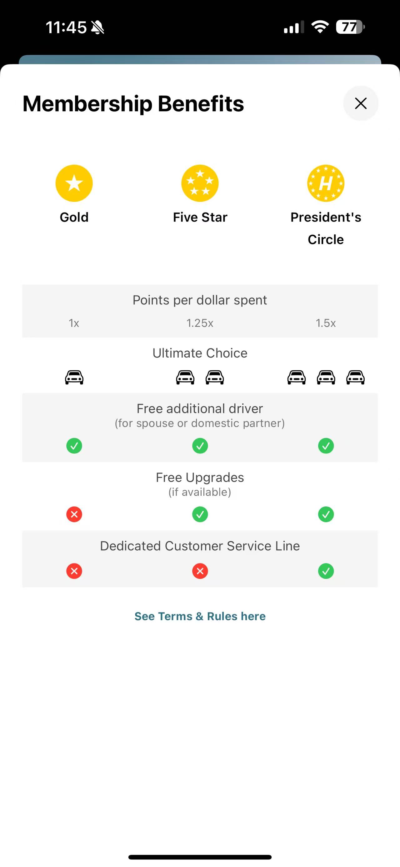报一个DP,这个640刀买120K分得的lHG水钻还有一个福利,可match Hertz President Circle: