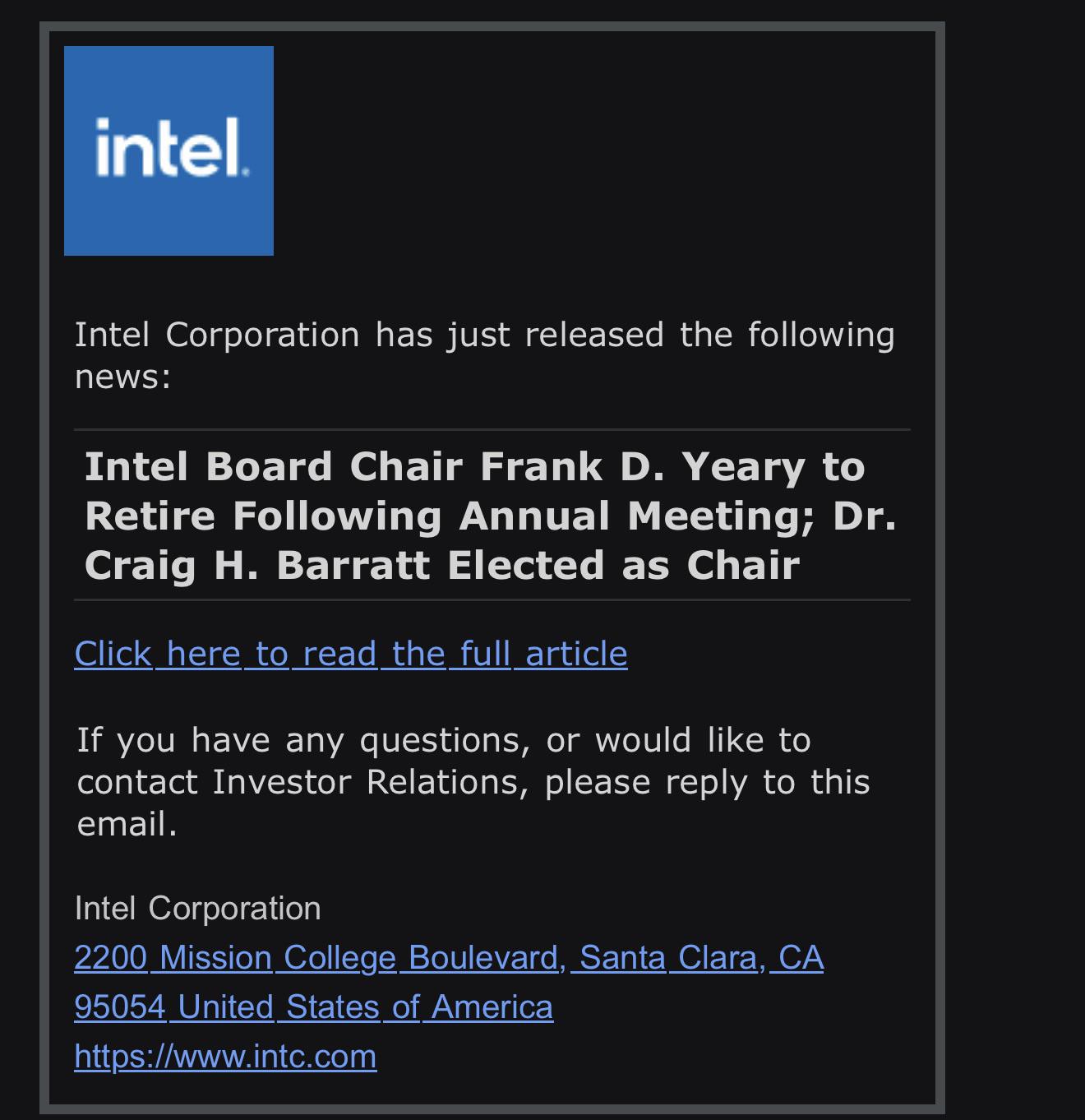 这下真是每次大盘大跌INTC就有特大利好了