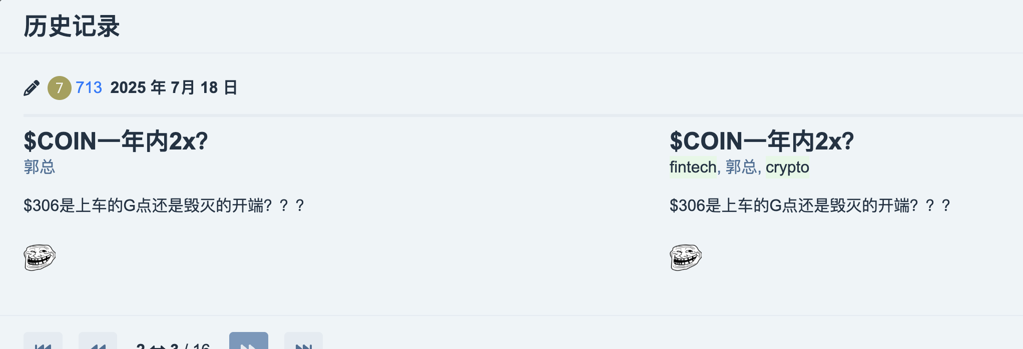 币股就是加杠杆的btc,不论是mstr crcl coin。加杠杆程度我感觉mstr>crcl>coin. 但我感觉未来crcl涨幅会是最高的 ![]()