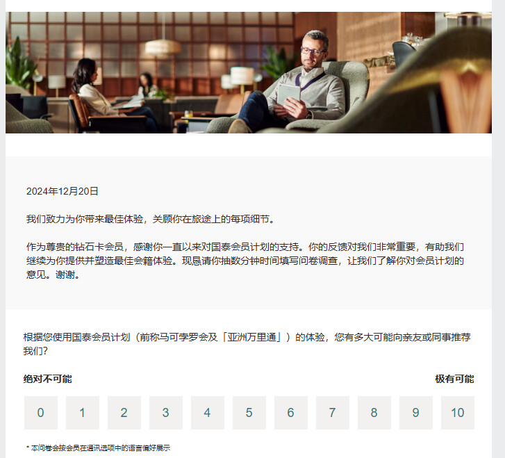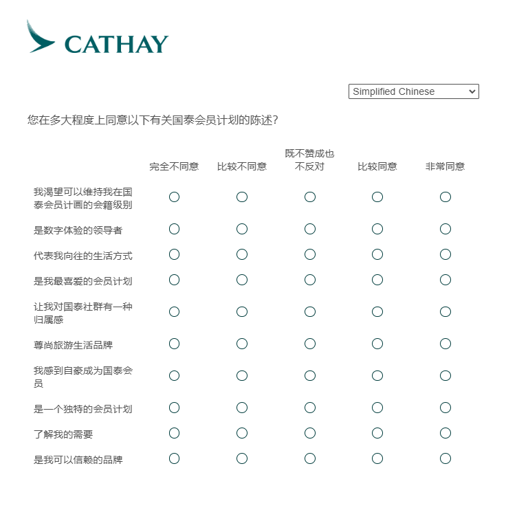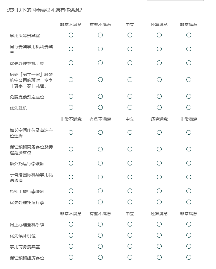 突然收到一个关于常旅客计划的调查问卷,截图了一些其中的问题: