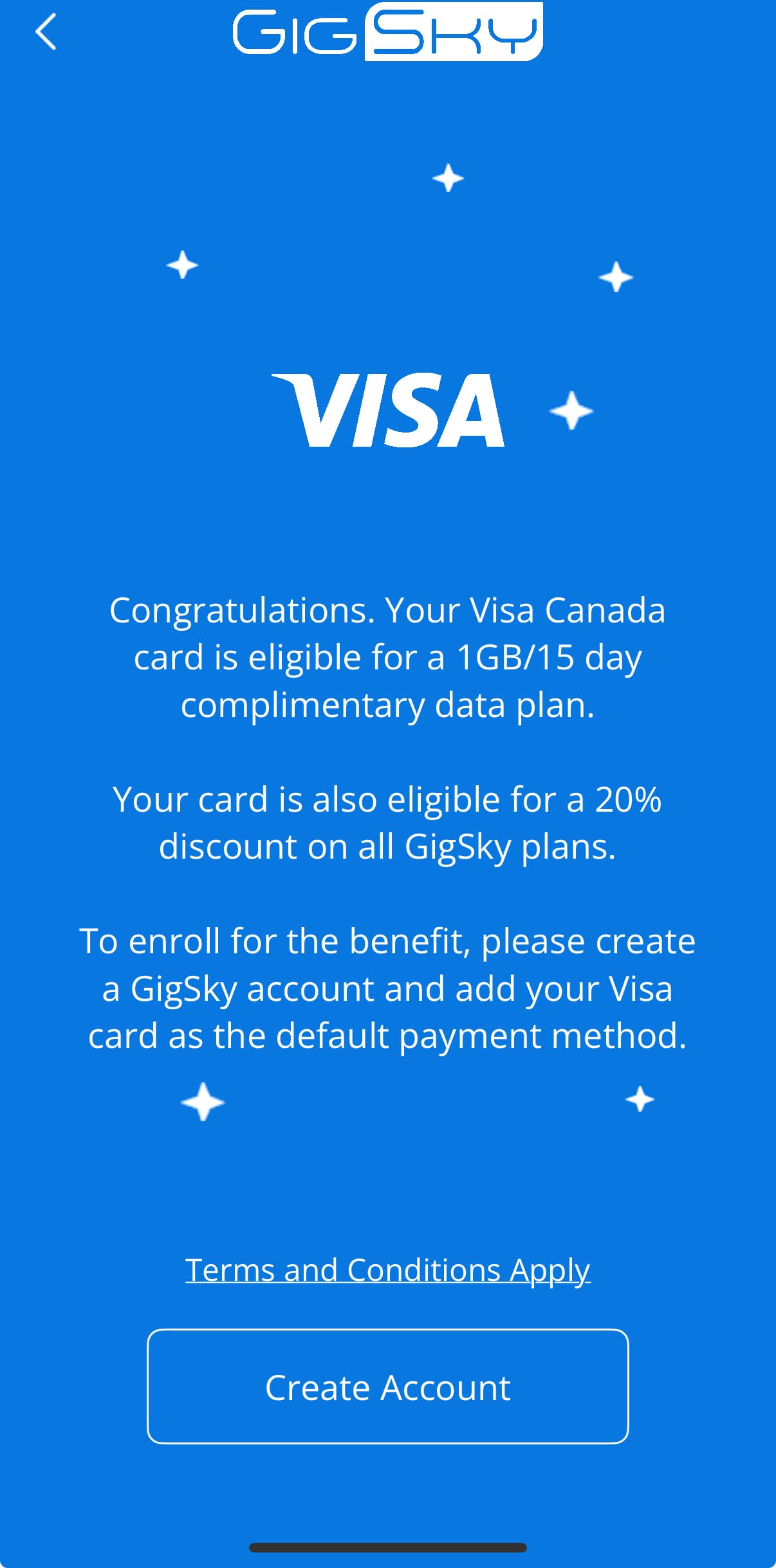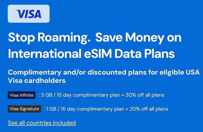 Visa Signature cardholders – Get a complimentary 1 GB/15 day international data plan + 20% off all plans