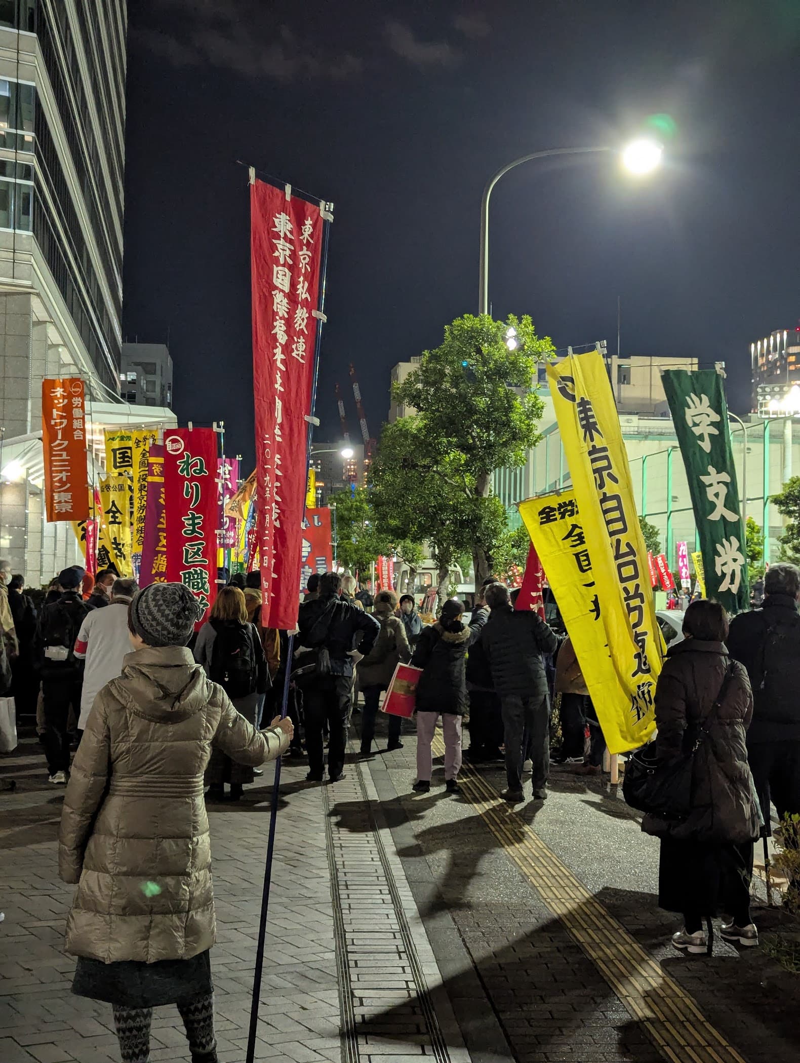 当天我从HND出发,因为没赶上班车,选择了坐临海线。在天王洲换乘时还碰上了JL的老员工在旁边的JL总部示威