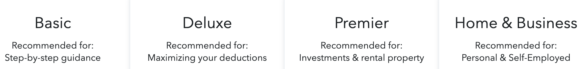 Desktop 版本之间(basic, deluxe, premier, home business)支持的税表的区别:无! [1] [2] [3]