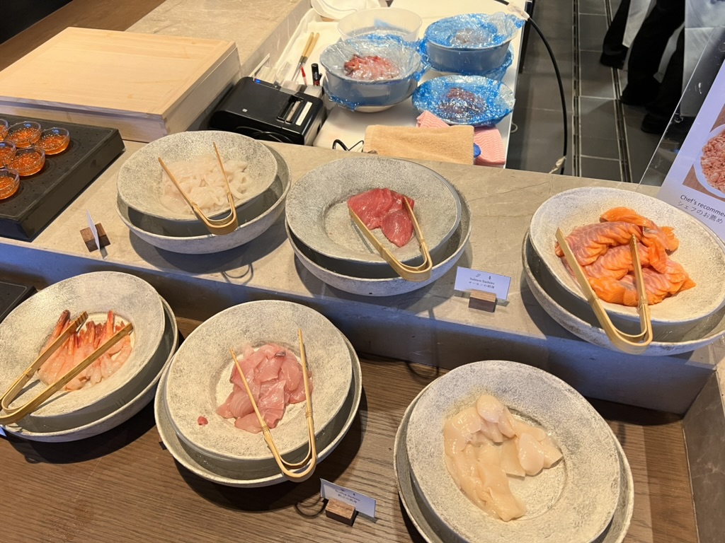 金枪鱼,帆立贝,甜虾,Hamachi,三文鱼,三文鱼鱼籽都是随便吃