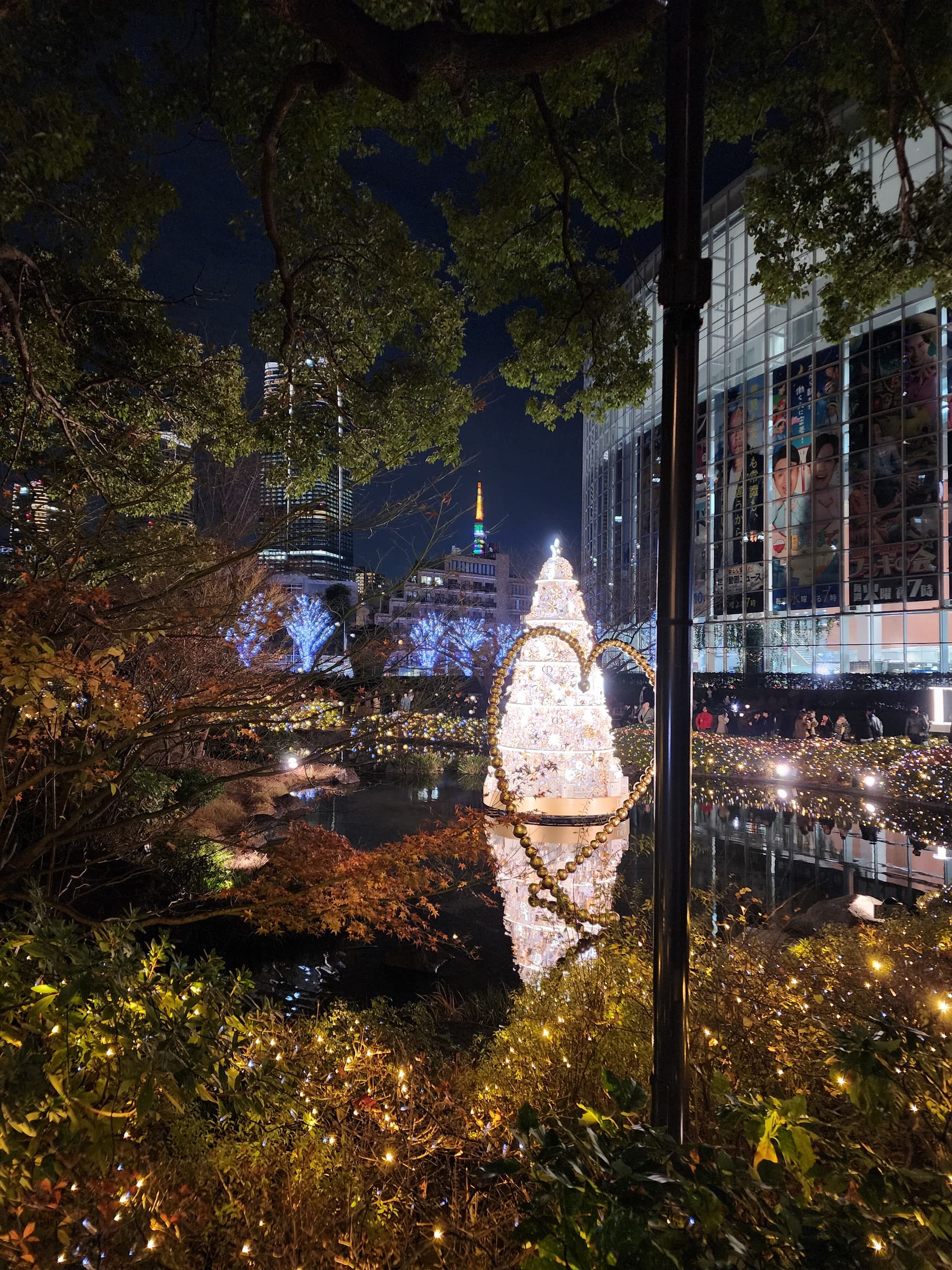 毛利庭园的圣诞装饰很漂亮,不过晚上是人山人海,图中远处是发亮的东京塔塔尖