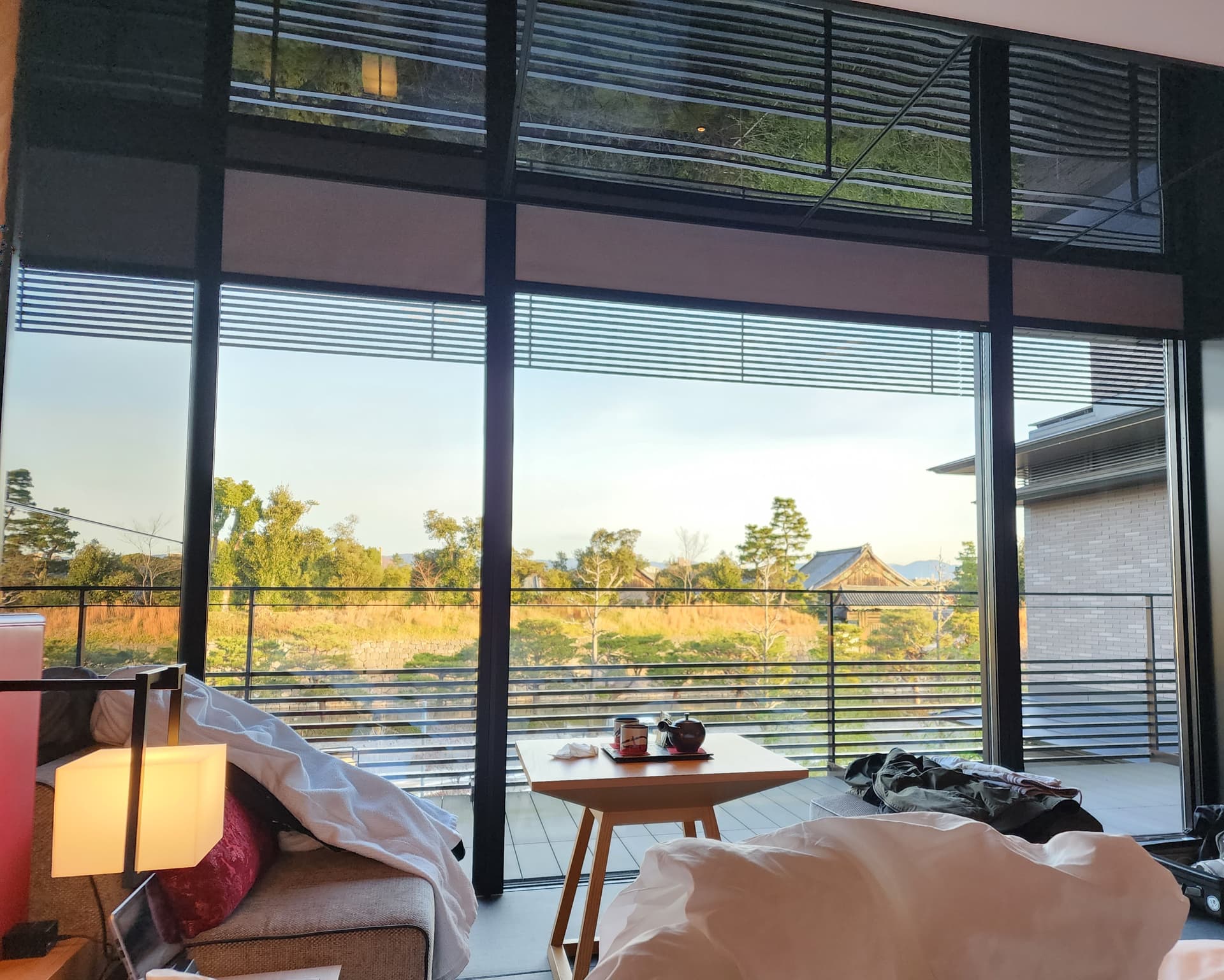 早晨升起酒店的自动窗帘可以看到阳光照在对面的元离宫二条城上,四舍五入住跟德川家康住一样的Lol