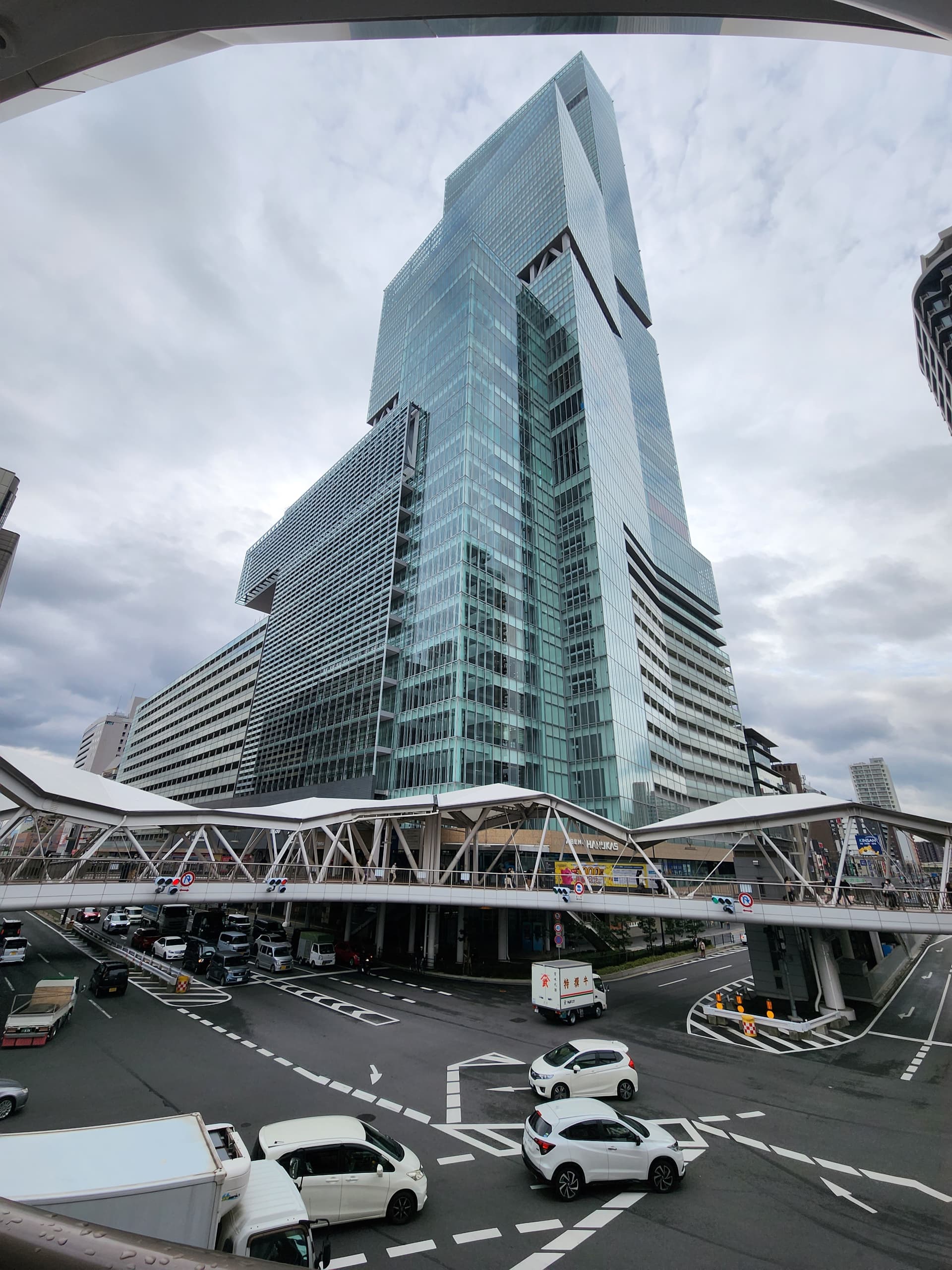 阿倍野大楼,拍照正对的角落差不多是酒店通向大堂的电梯,有过街天桥连接地铁站,大楼和天王寺公园