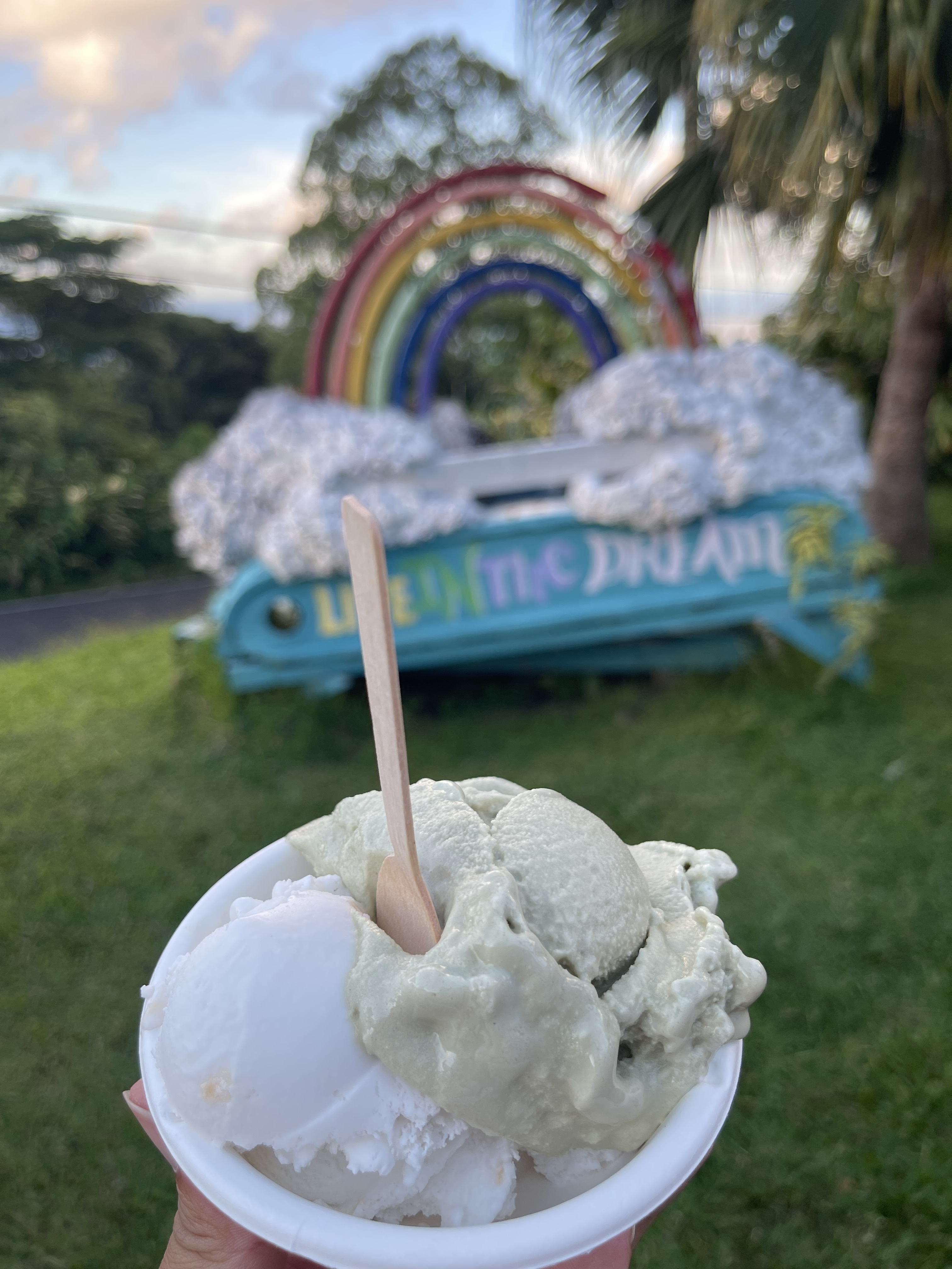 无脑冲的椰子水和冰淇淋小店。夏威夷本地人推荐的,冰淇淋价格不贵而且真的很好吃,店主也很好说话。