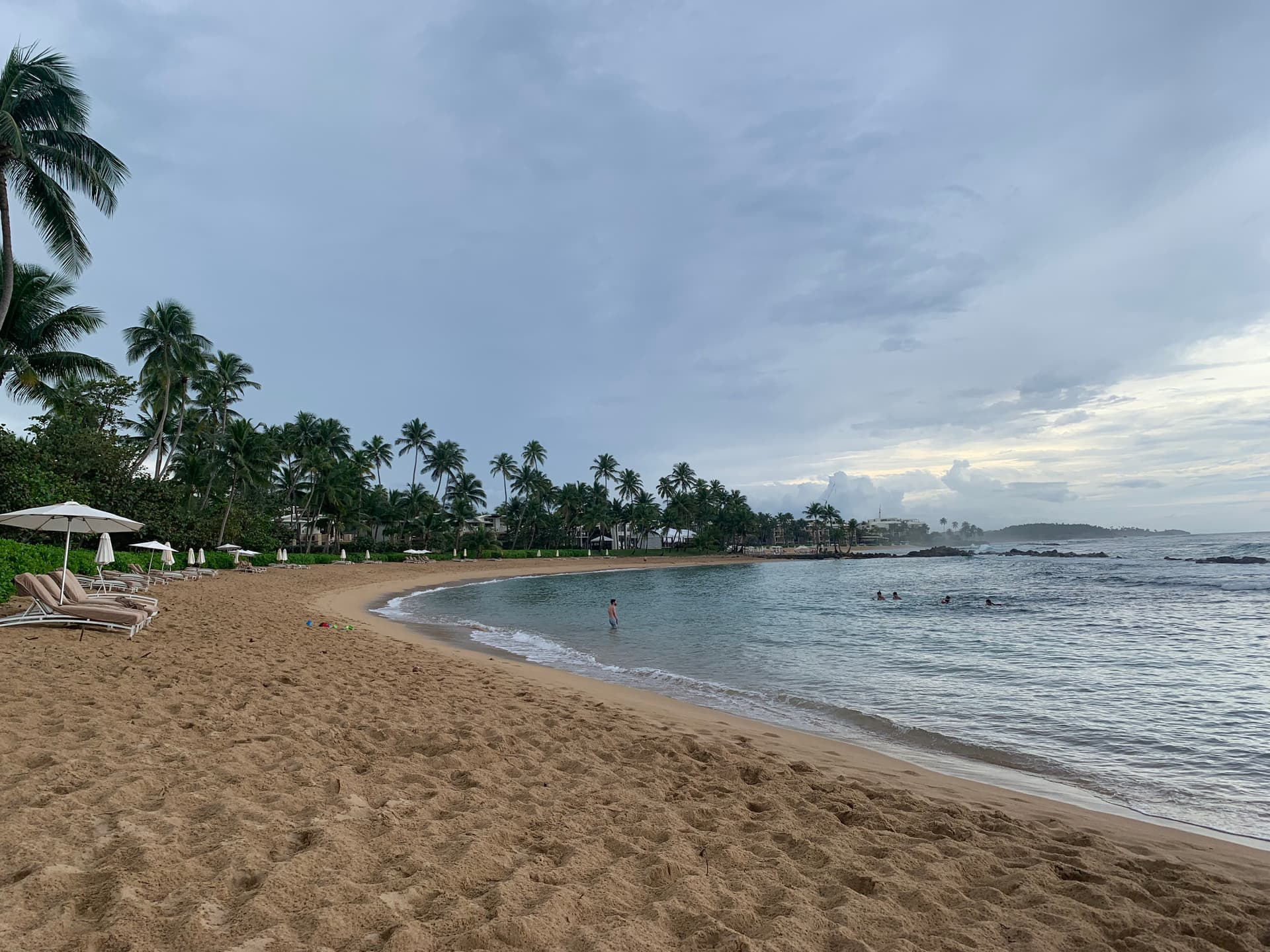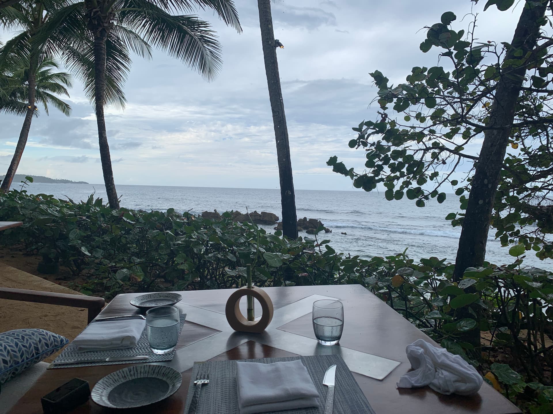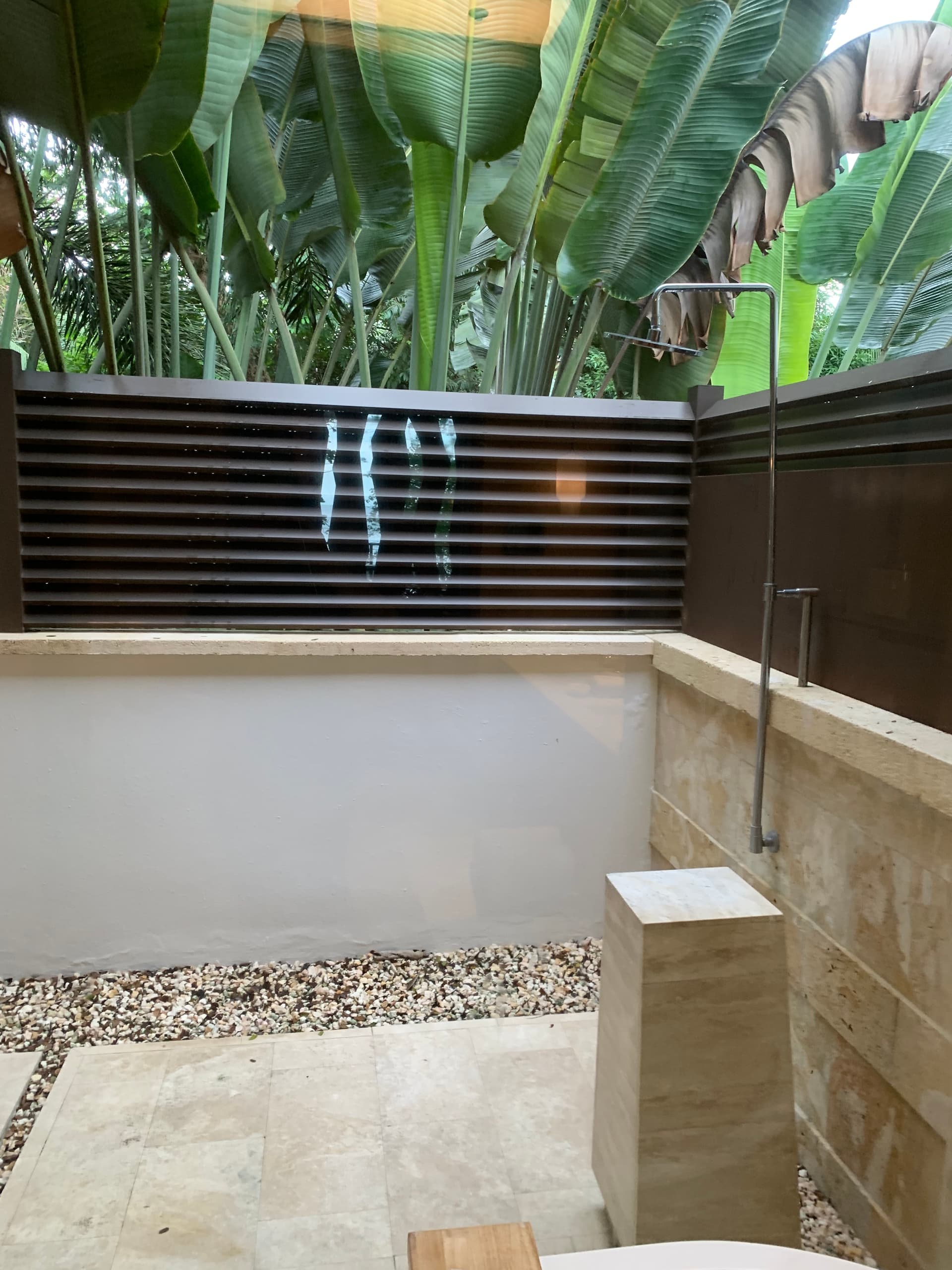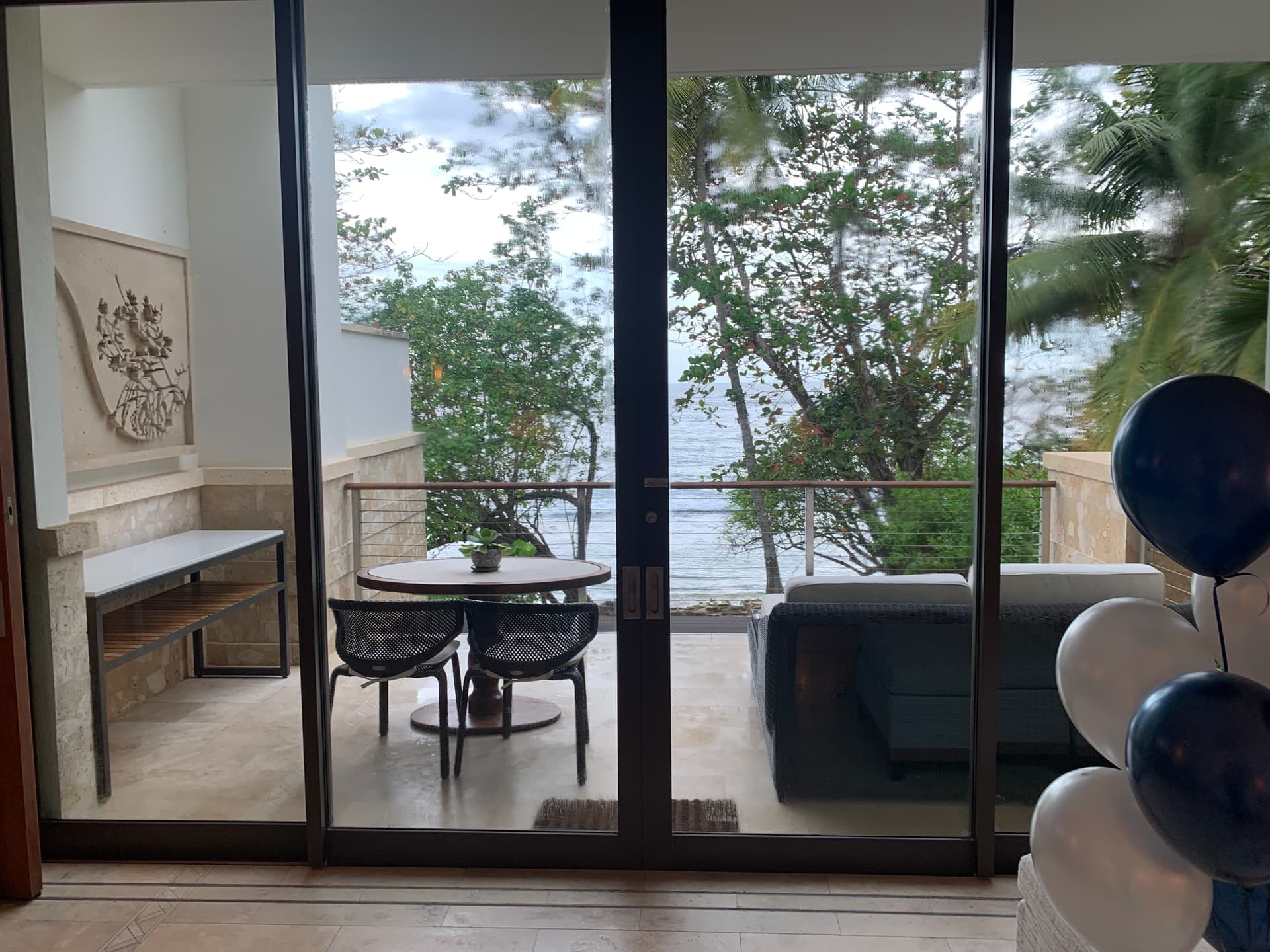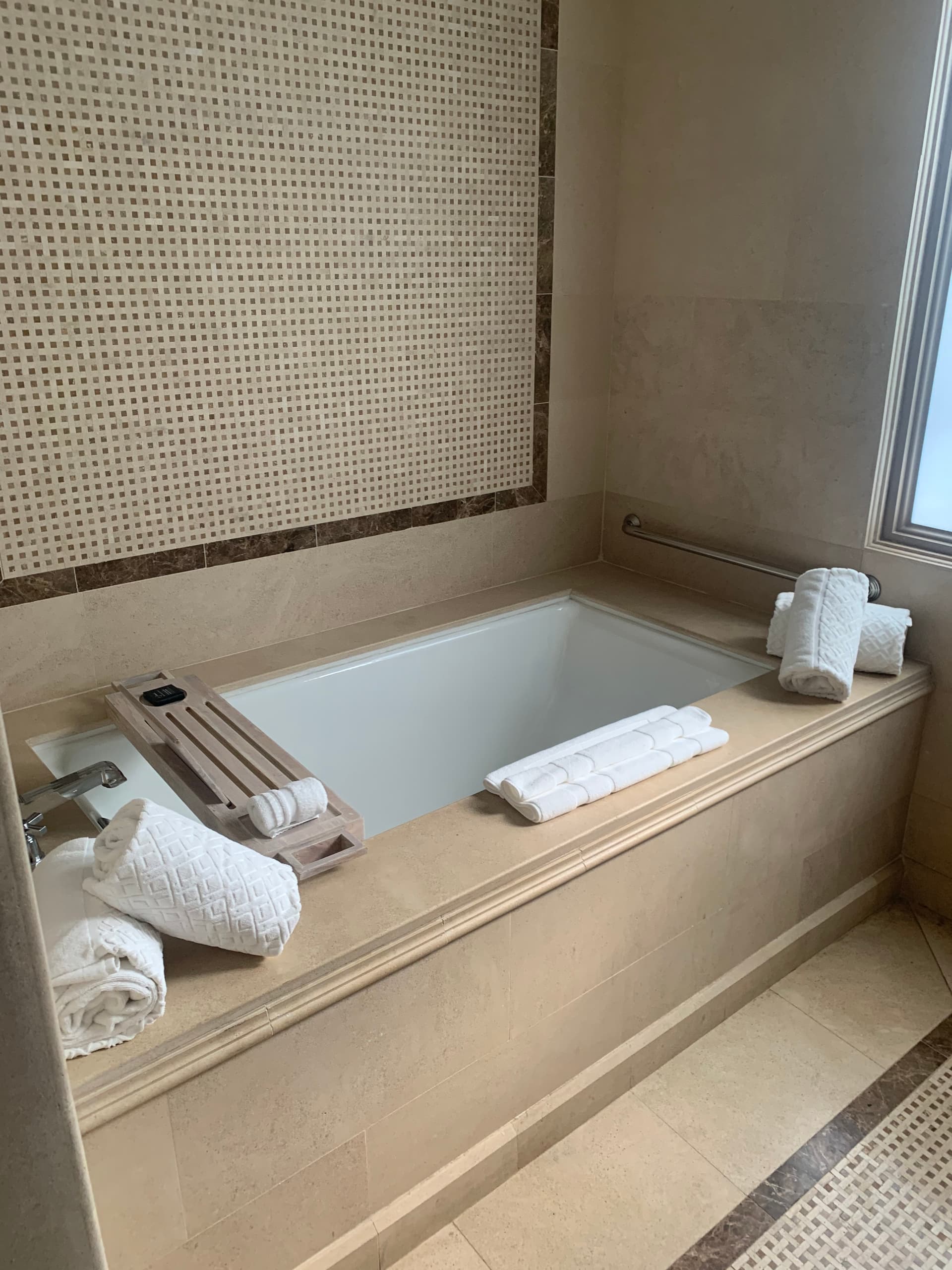 这房间我个人感觉是真心不错的,快1000sqft的面积,卫生间的室外淋浴真的特别有设计感,(虽然12月但温度还是30摄氏度所以真洗澡就有点闷热)。浴缸也特别大。所有备品都是他们spa自己研制的ginger lemon味道系列的,闻着很清新。阳台的海景其实真的还不错,就是照片里实在体现不出来哈哈哈。真心很完美。