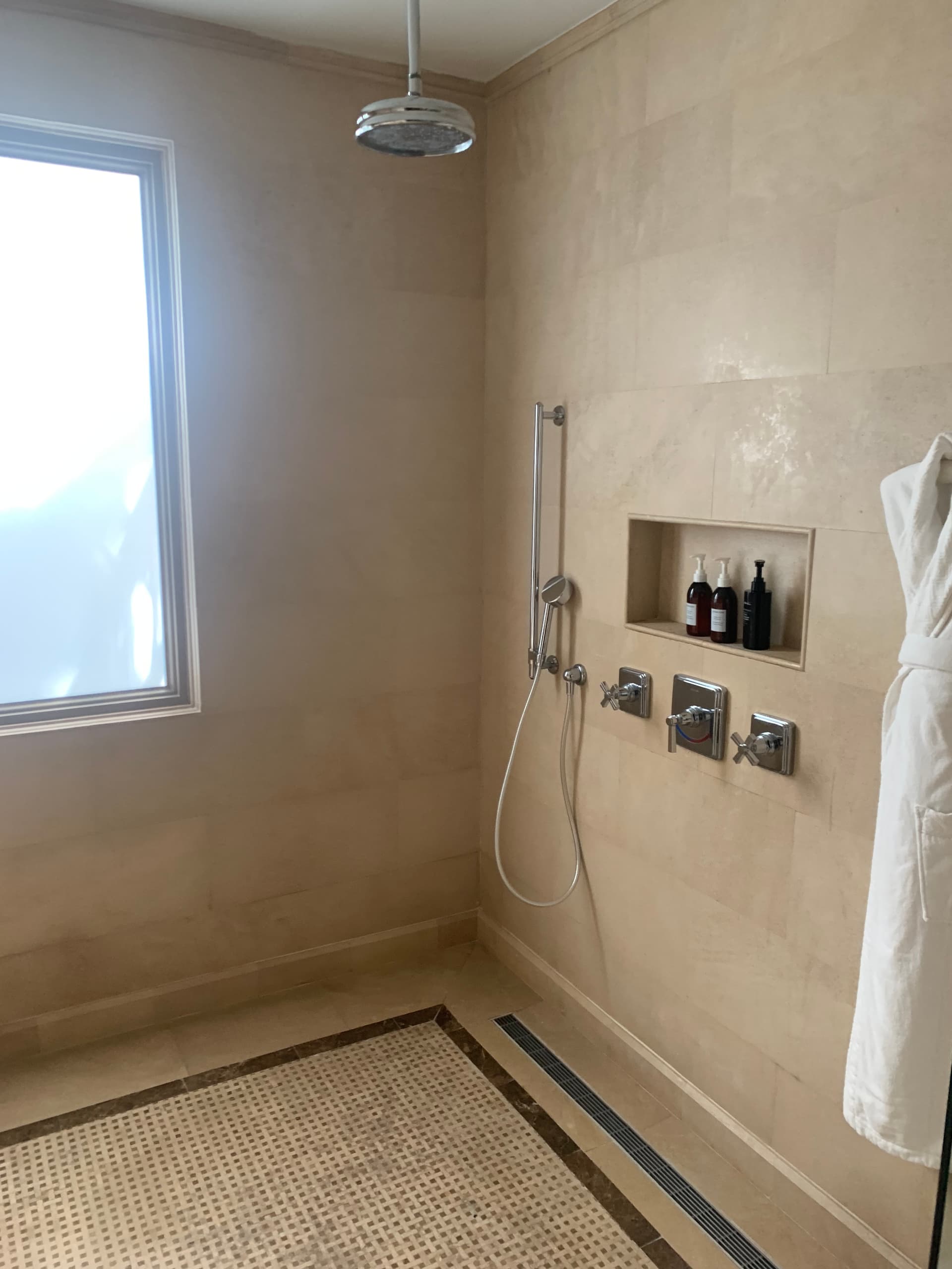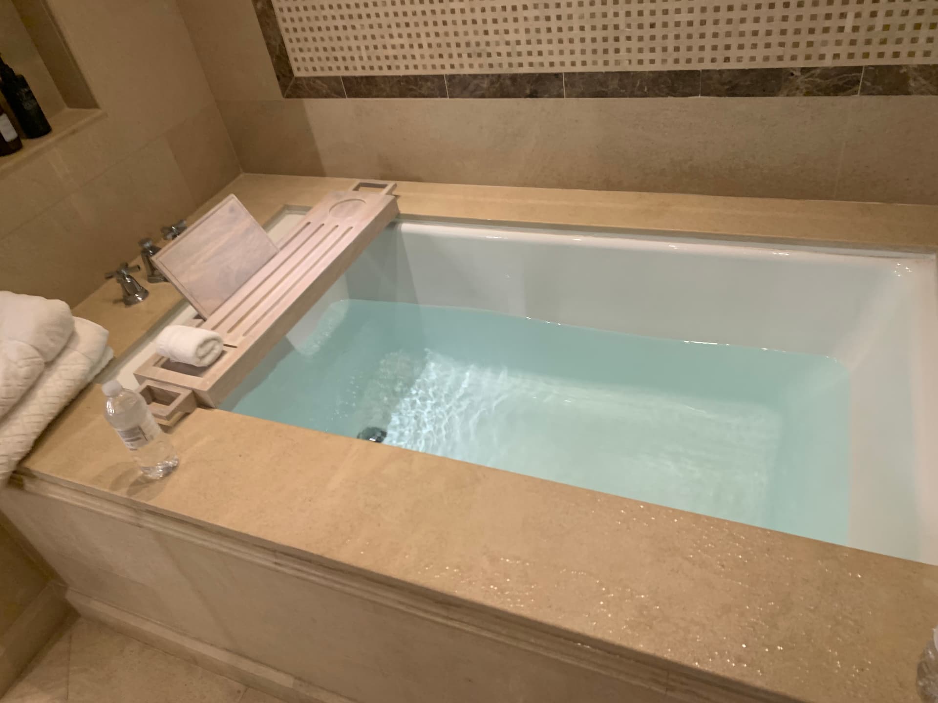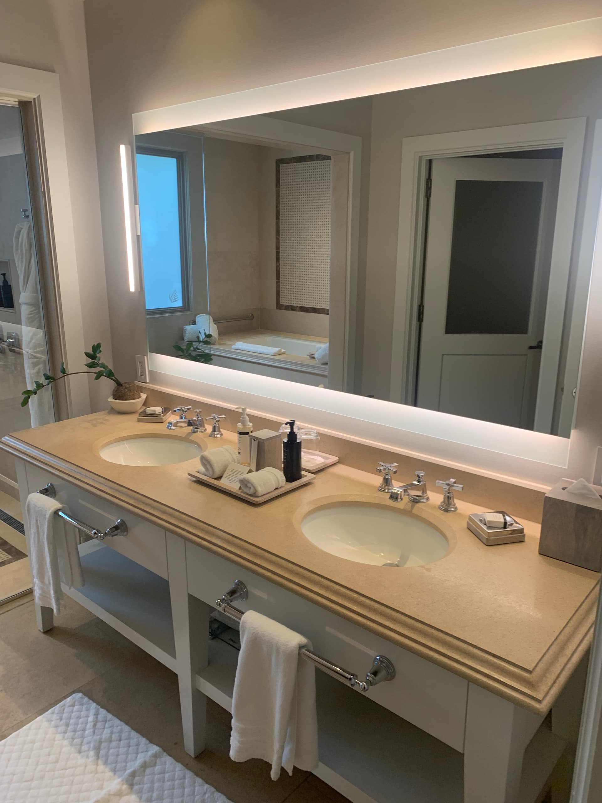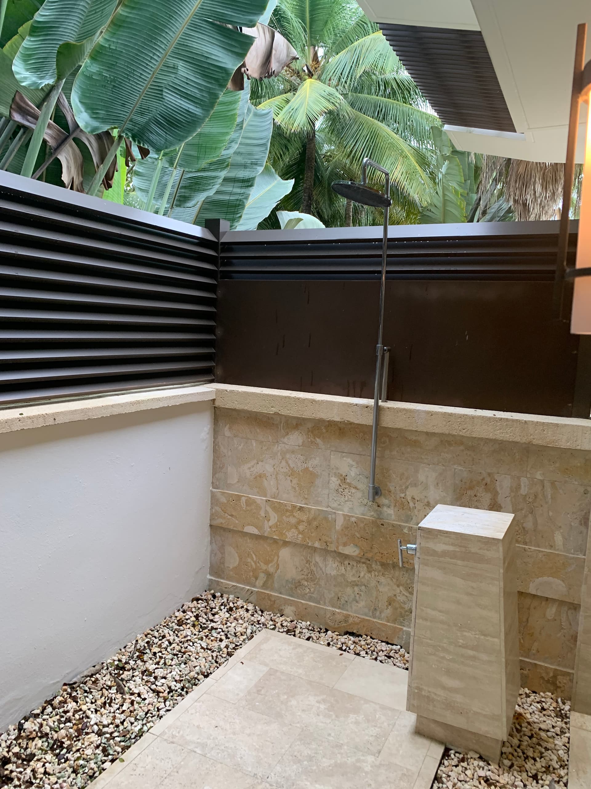 这房间我个人感觉是真心不错的,快1000sqft的面积,卫生间的室外淋浴真的特别有设计感,(虽然12月但温度还是30摄氏度所以真洗澡就有点闷热)。浴缸也特别大。所有备品都是他们spa自己研制的ginger lemon味道系列的,闻着很清新。阳台的海景其实真的还不错,就是照片里实在体现不出来哈哈哈。真心很完美。