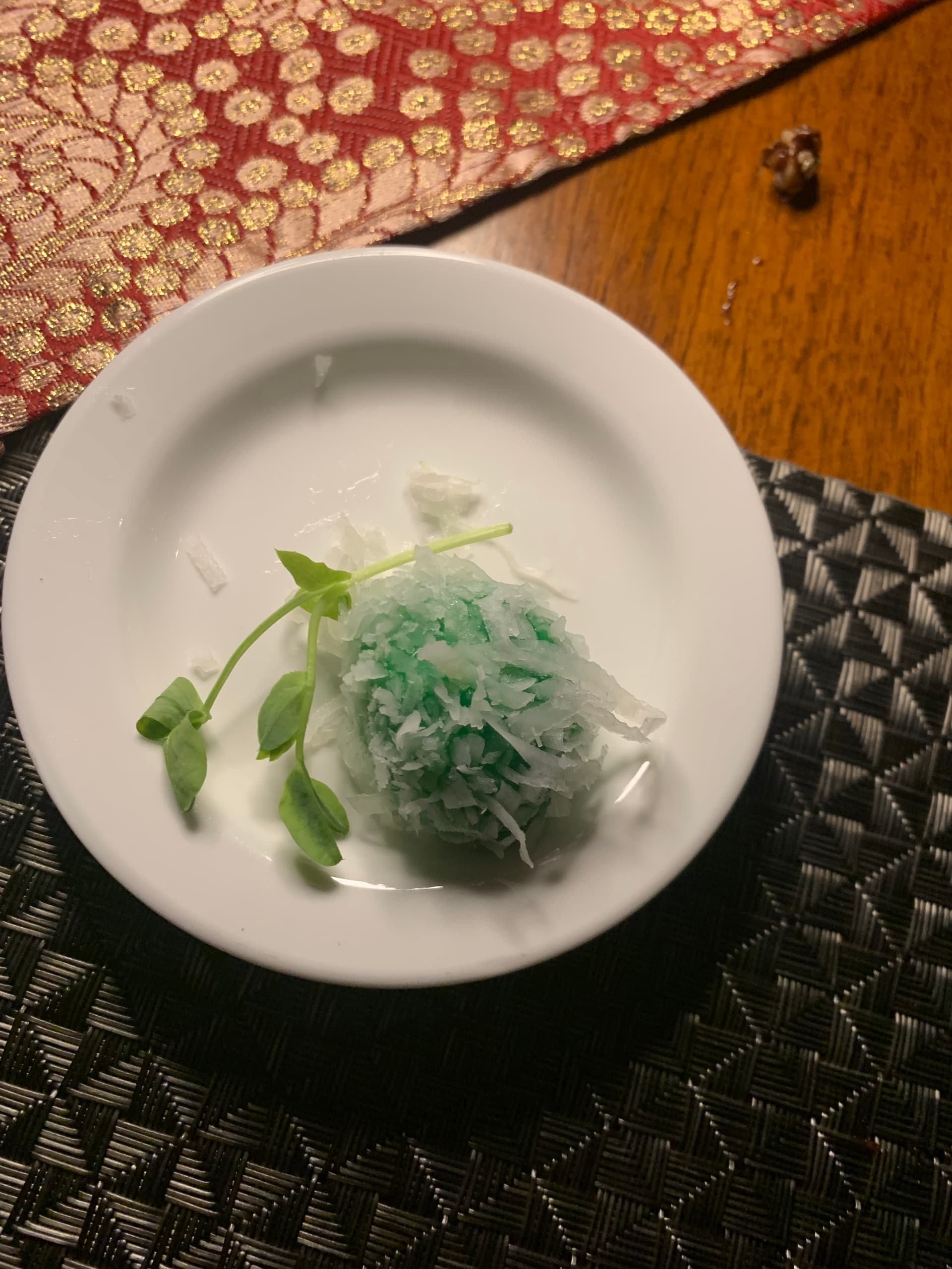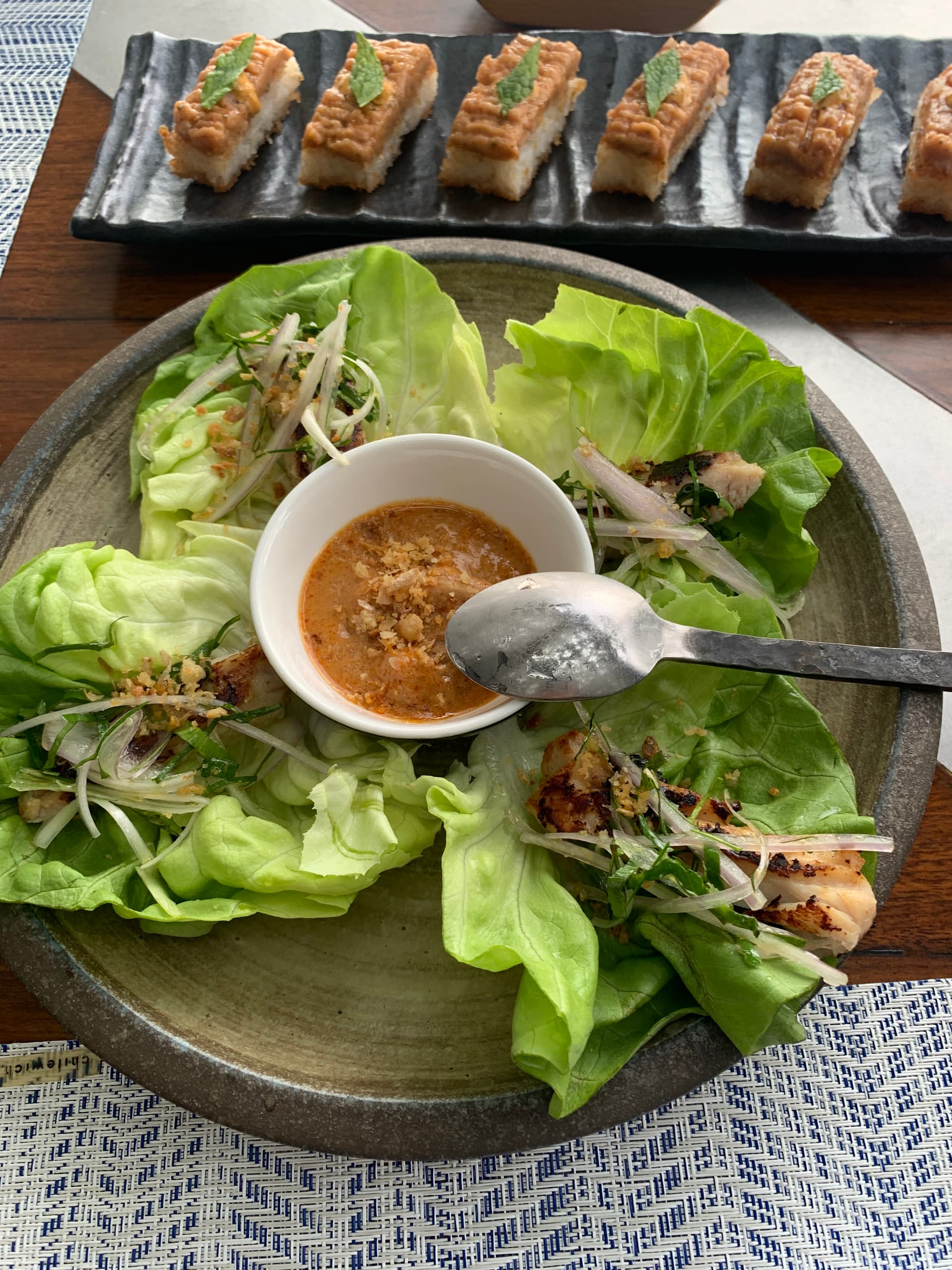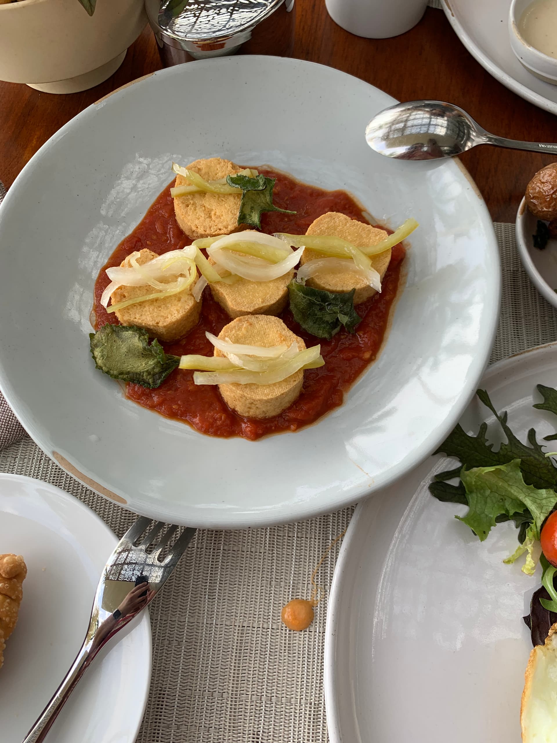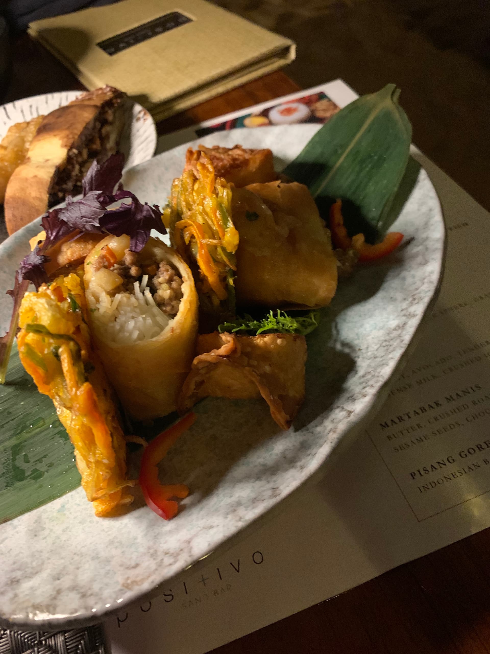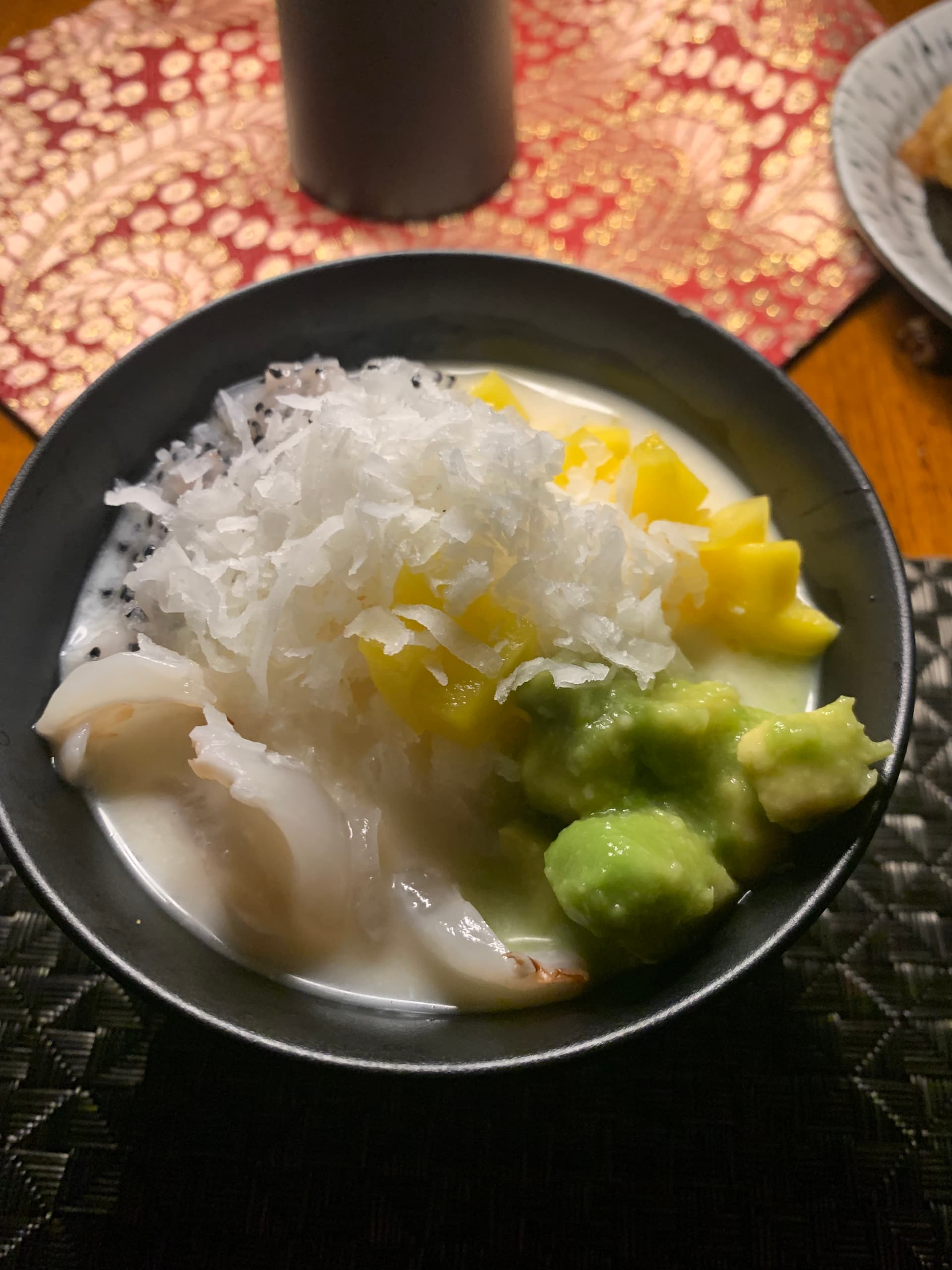 酒店好像有三四个餐厅,当天正好有个special event,印度尼西亚buffet,管家说2人位就只剩最后1个slot,我们寻思那就去看看怎么个事。结果觉得还真的挺好吃。前菜会一盘盘端上来,主菜有炖牛肉,鸡肉炒饭,各种烤串,羊肉汤什么的,主菜都有厨子站在旁边现场做,还有各种甜点。主菜和甜点都是自取。真的特别符合我的胃口哈哈哈,感觉应该搬到常驻菜单。有个类似“椰子西米露”的甜点属实惊艳。