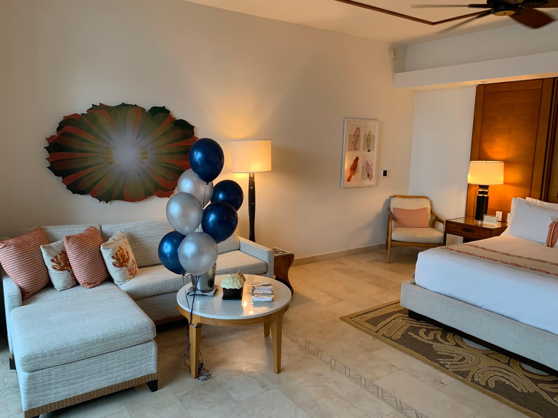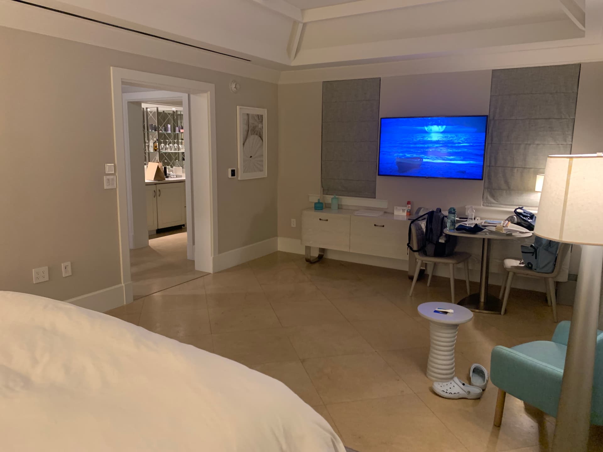 飞回san juan以后打车去住瑞吉,之前套房卷显示升级到了oceanfront grand deluxe,结果到了地方变成了garden view了 前台说没办法,就这样排了。硬件上还是可以的。房间750sqft左右。welcome drink给了橙子味的酒很好喝。下午去云雀感觉没啥意思素然无味。。。午饭晚饭都在瑞吉吃的,味道一般说实话不放图了,白金及以上会员会给免费自助早餐