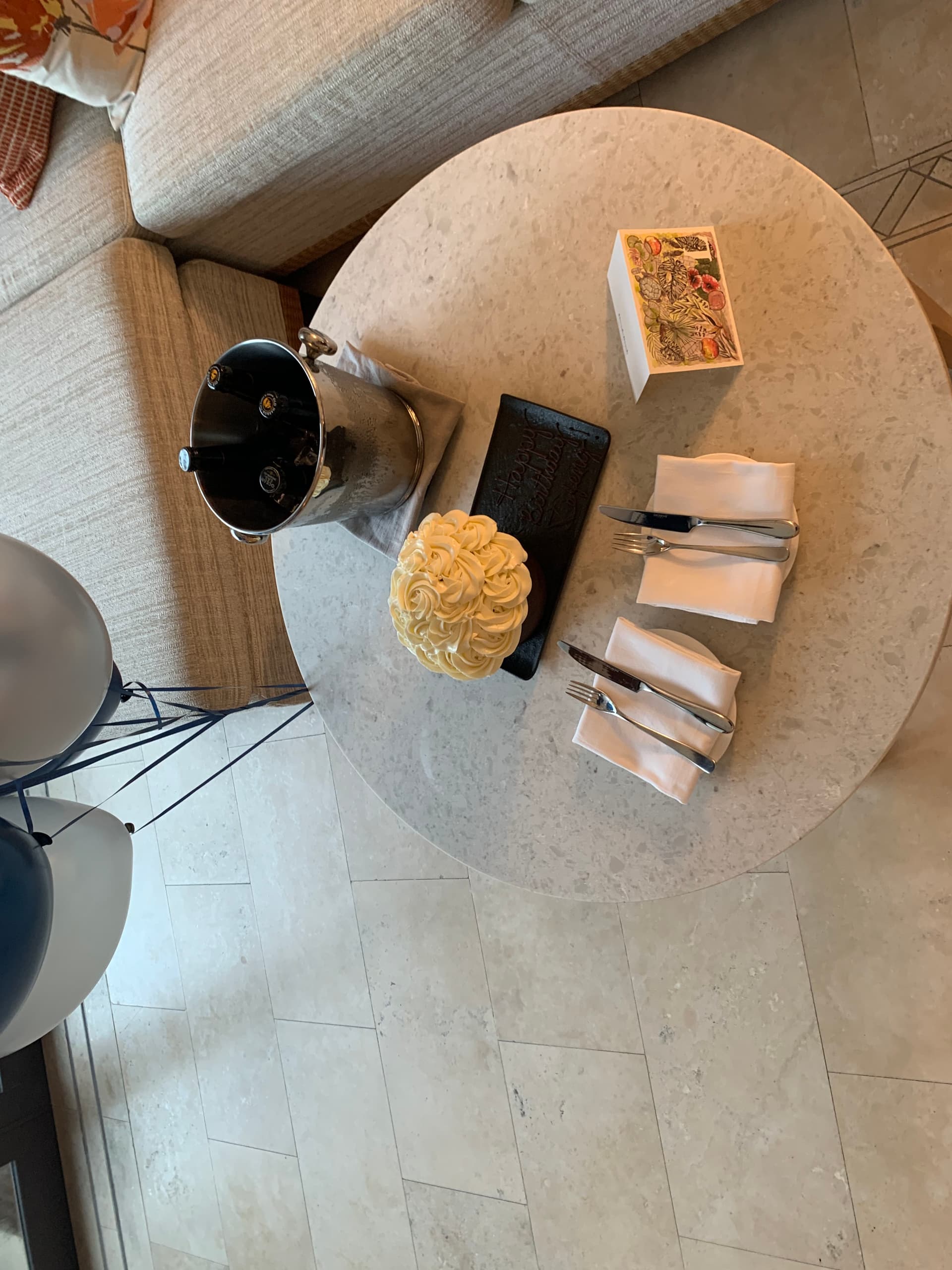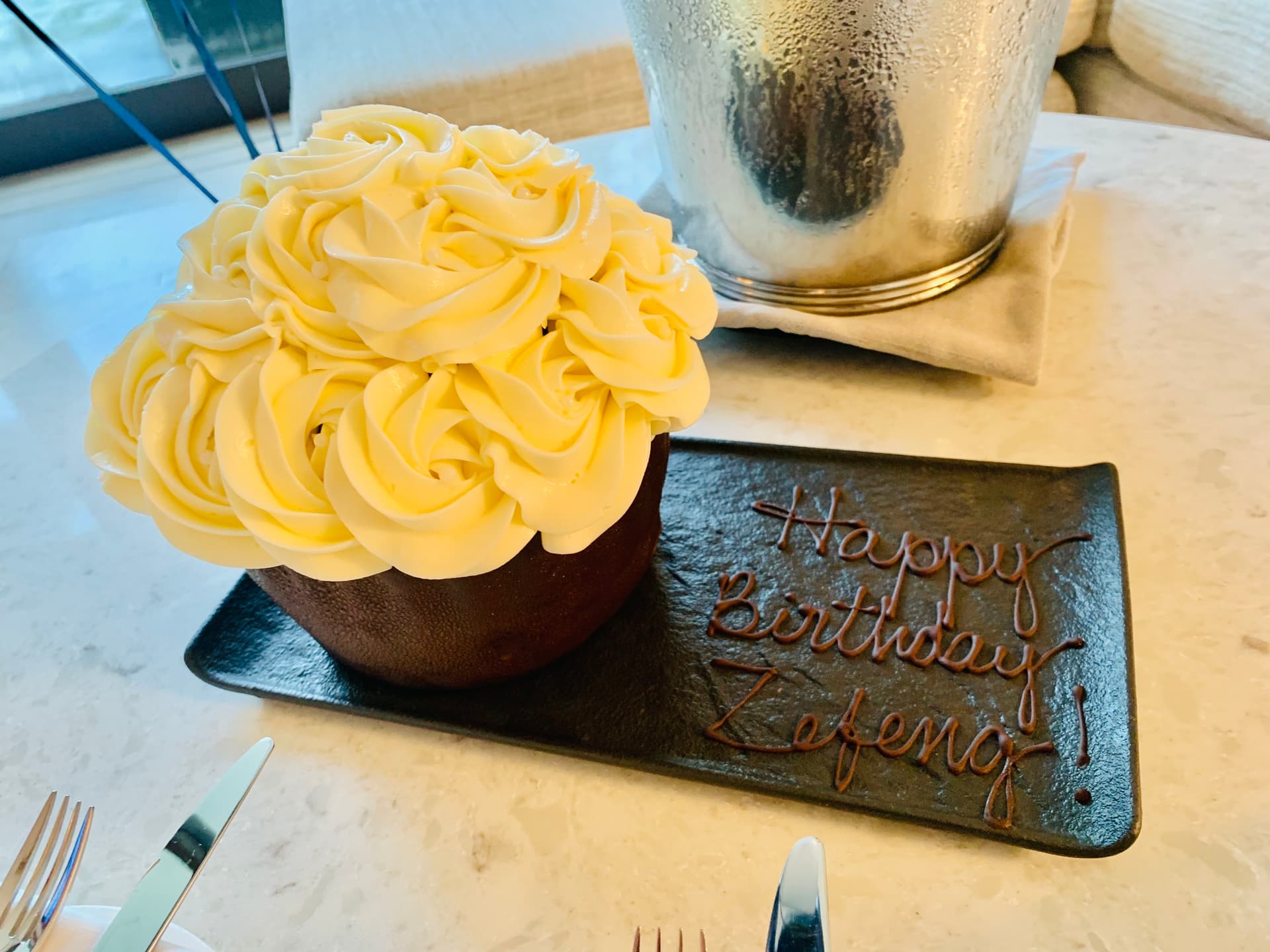 正好过生日,当时提了一嘴,给送了100刀的早餐额度,能从栗子淫世要到饭还是挺开心的,然后进房间还发现给了个贼大的蛋糕和4瓶local啤酒。这蛋糕除了最外面那一层巧克力,里面的层次和奶油还真的不错,不是那么齁甜。