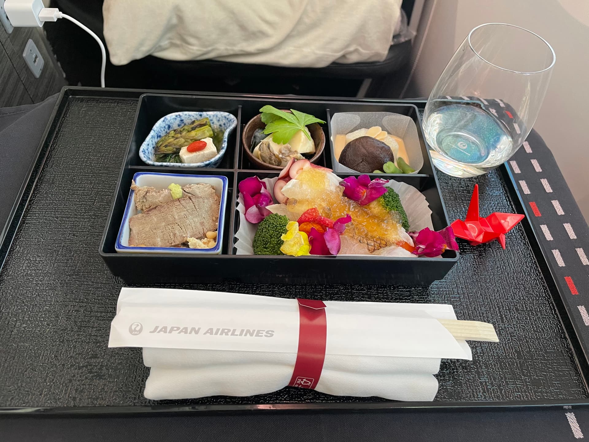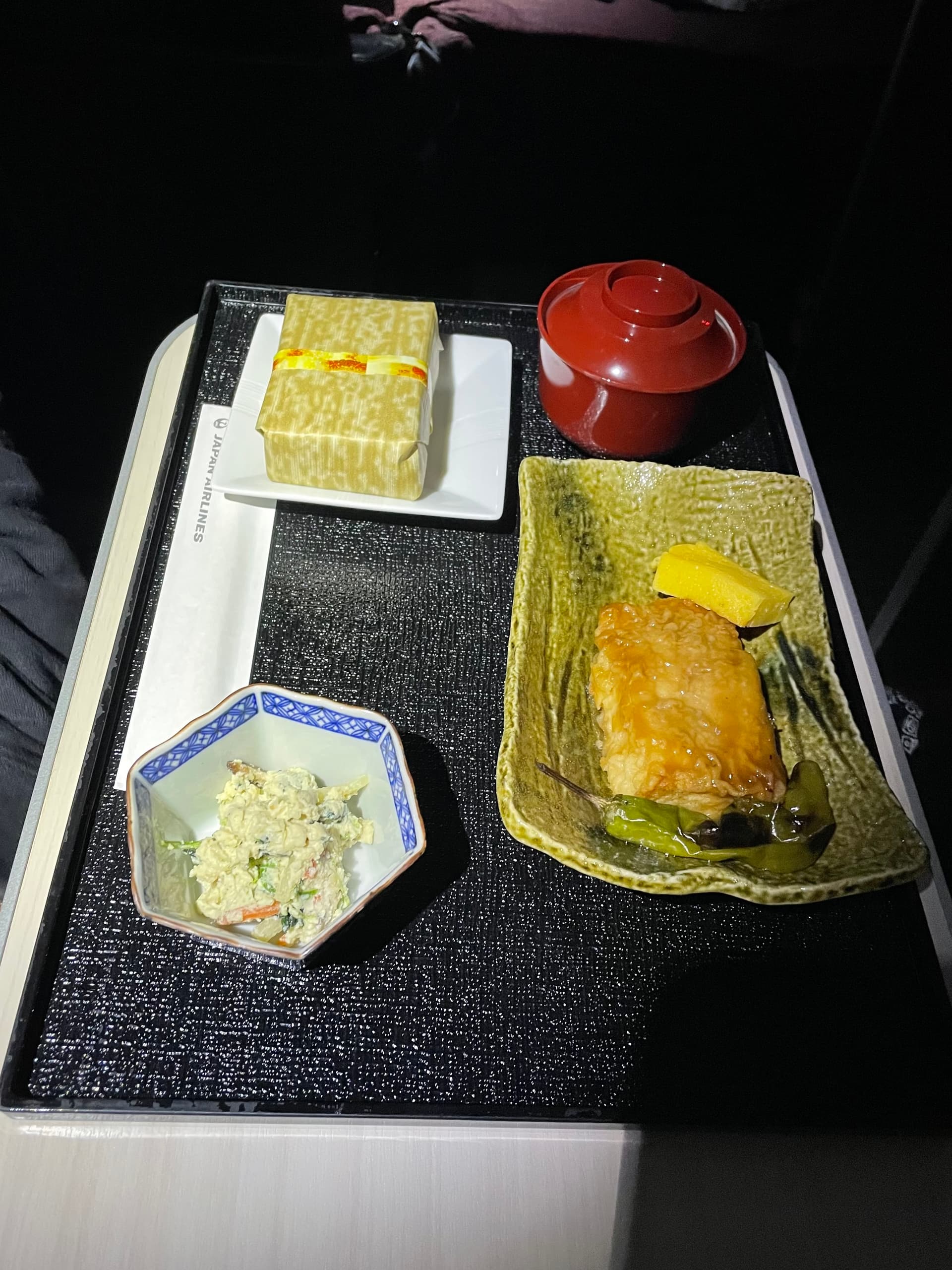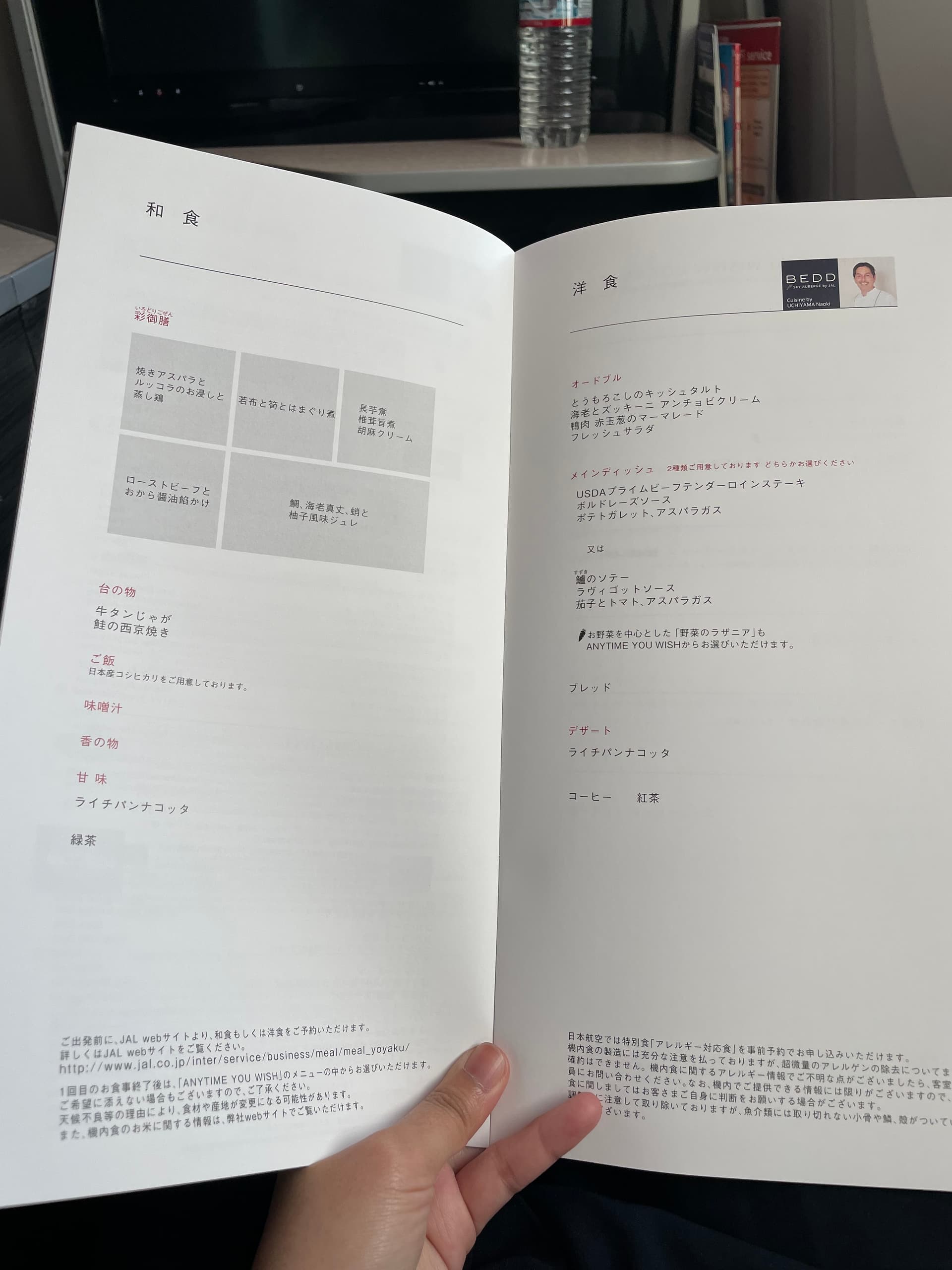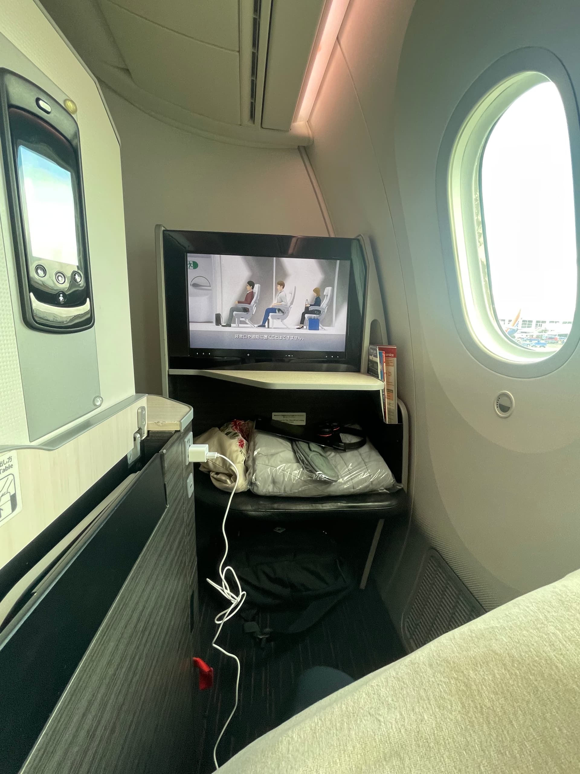 飞机是Boeing 787-8。JL商务的攻略在谭里也不少了,不再赘述。总之我认为吃食还不错,位置也大。我们1K 1H。小姐姐的跪式服务也少不了。