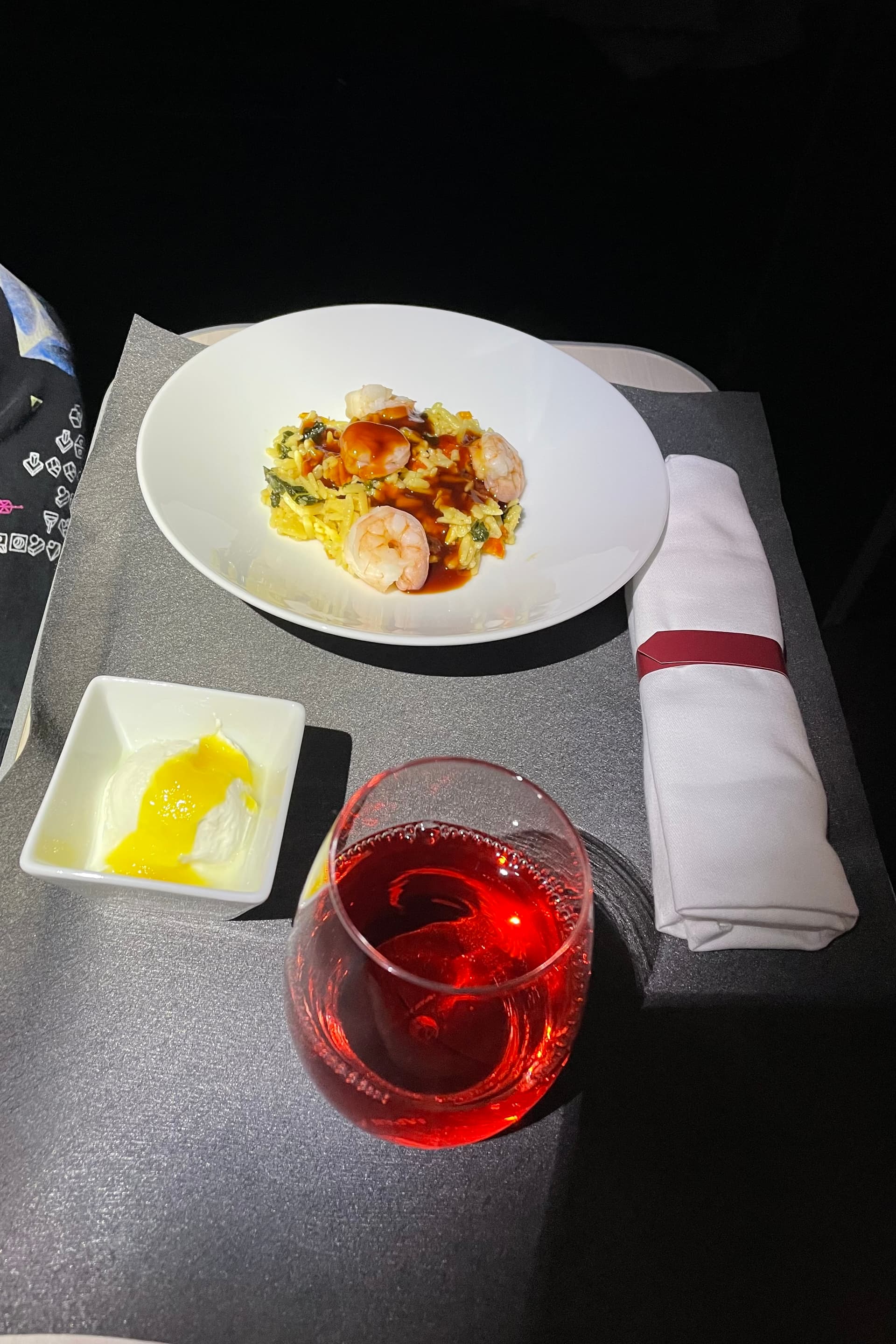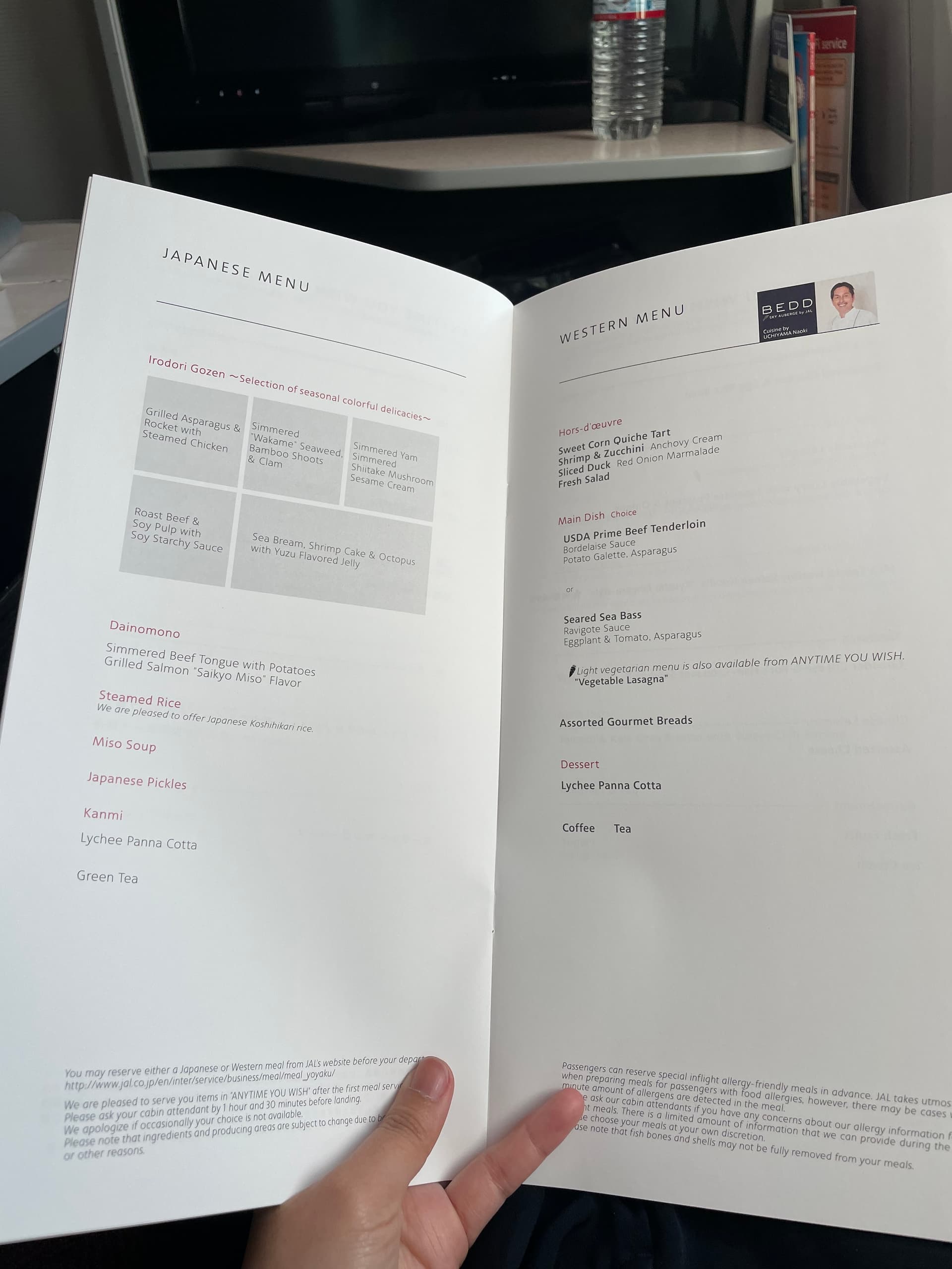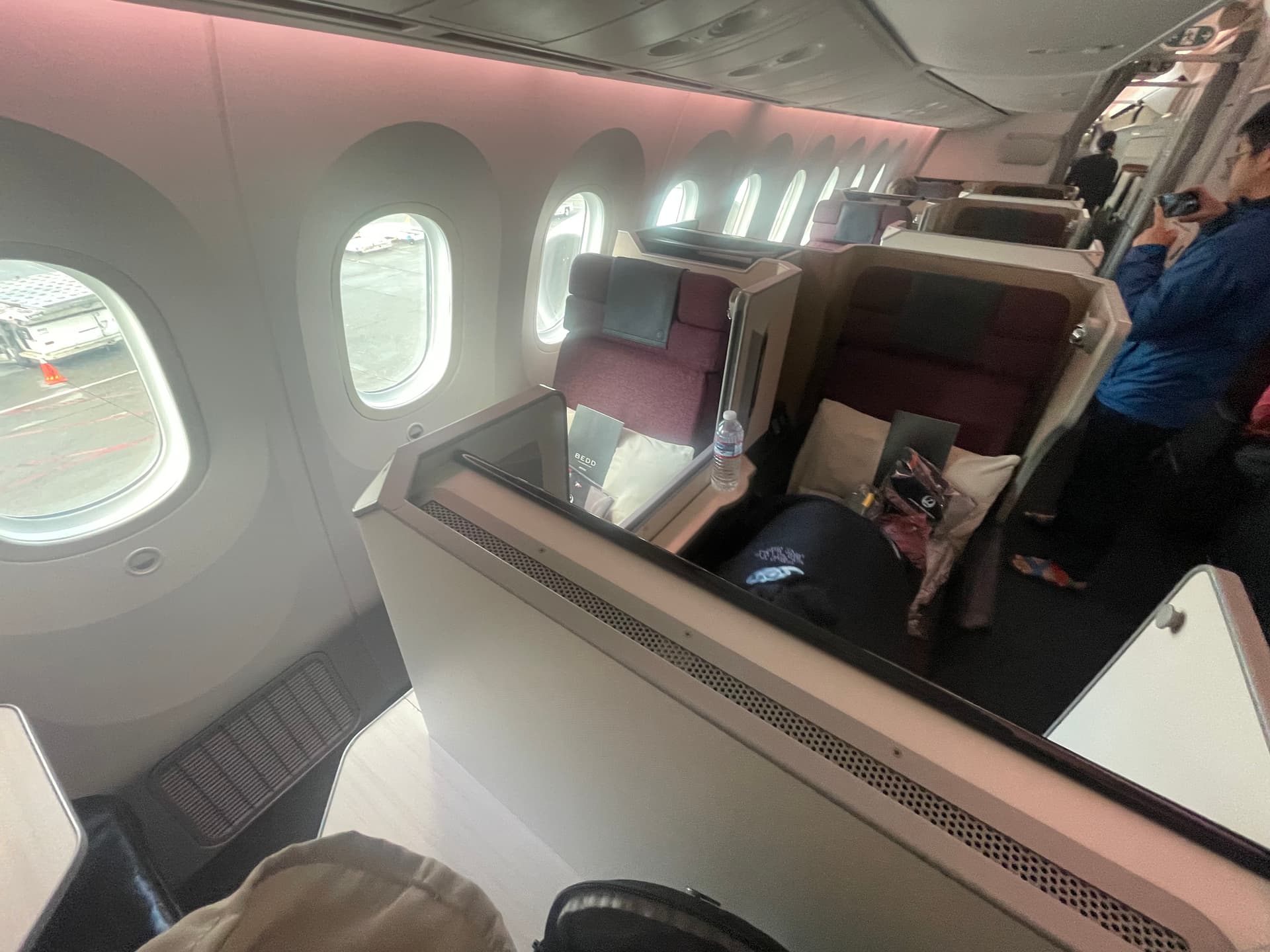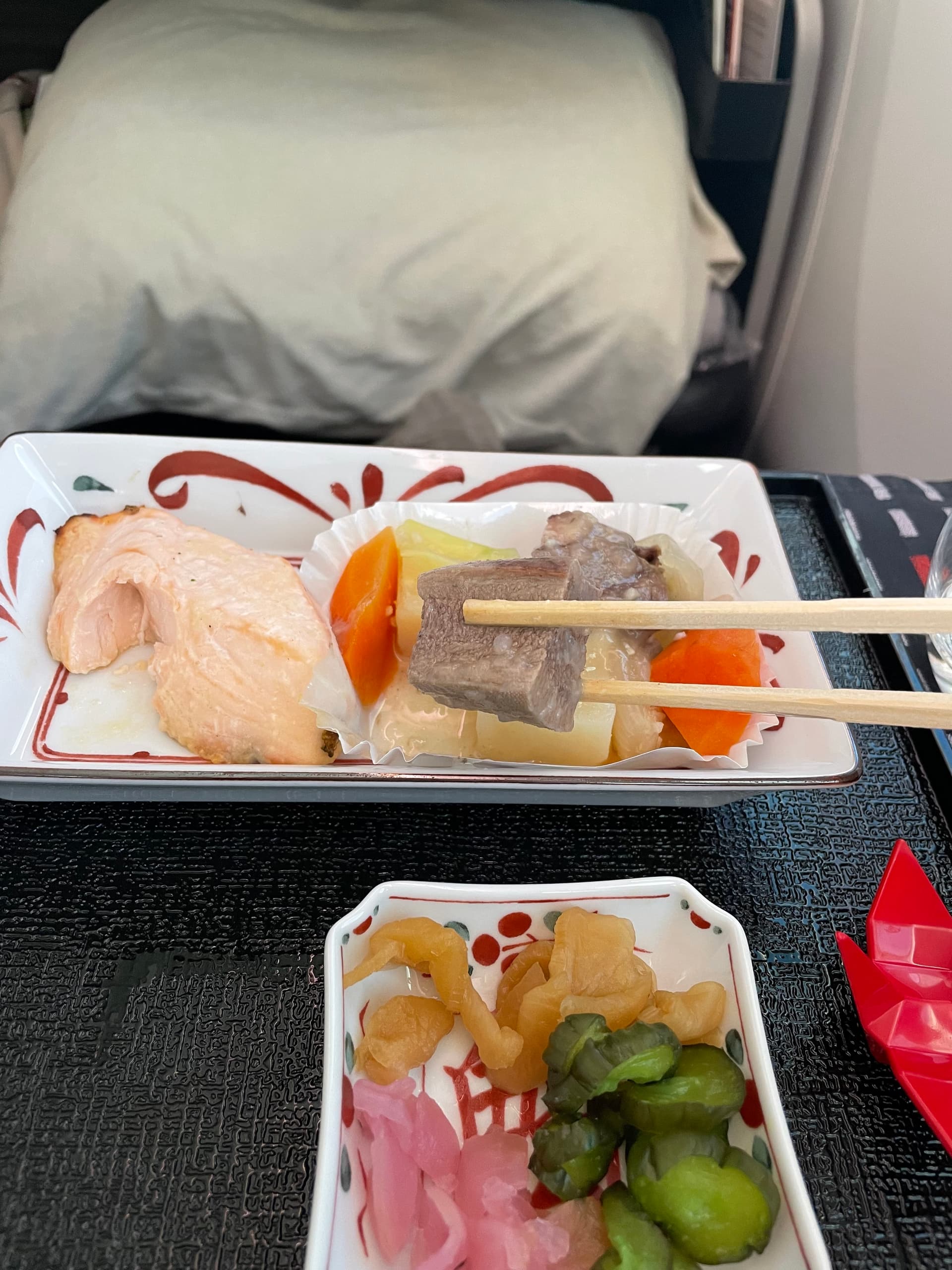 飞机是Boeing 787-8。JL商务的攻略在谭里也不少了,不再赘述。总之我认为吃食还不错,位置也大。我们1K 1H。小姐姐的跪式服务也少不了。