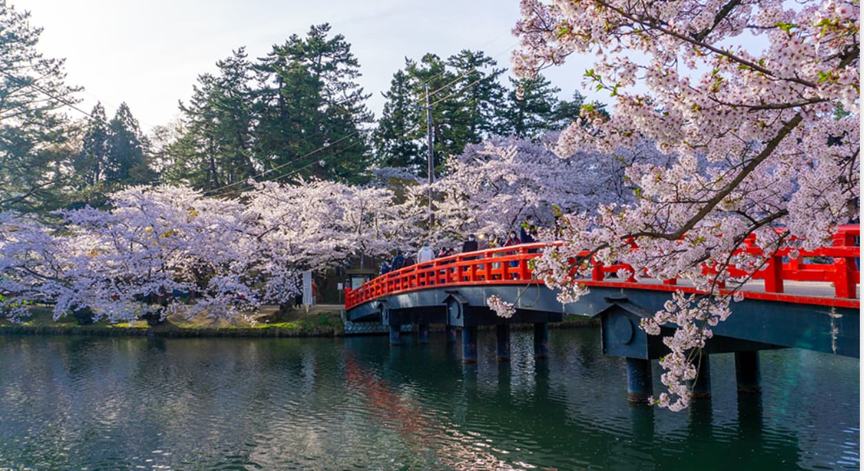 公園南側的「白兔橋」,也是人們熟知的經典拍攝景點。站在橋上,以山頂上還殘留有白雪的中央阿爾卑斯山脈為背景,前景是大片盛開的櫻花團,真是一處讓人到了這裡就情不自禁想要狂拍數張留下紀念的地方。