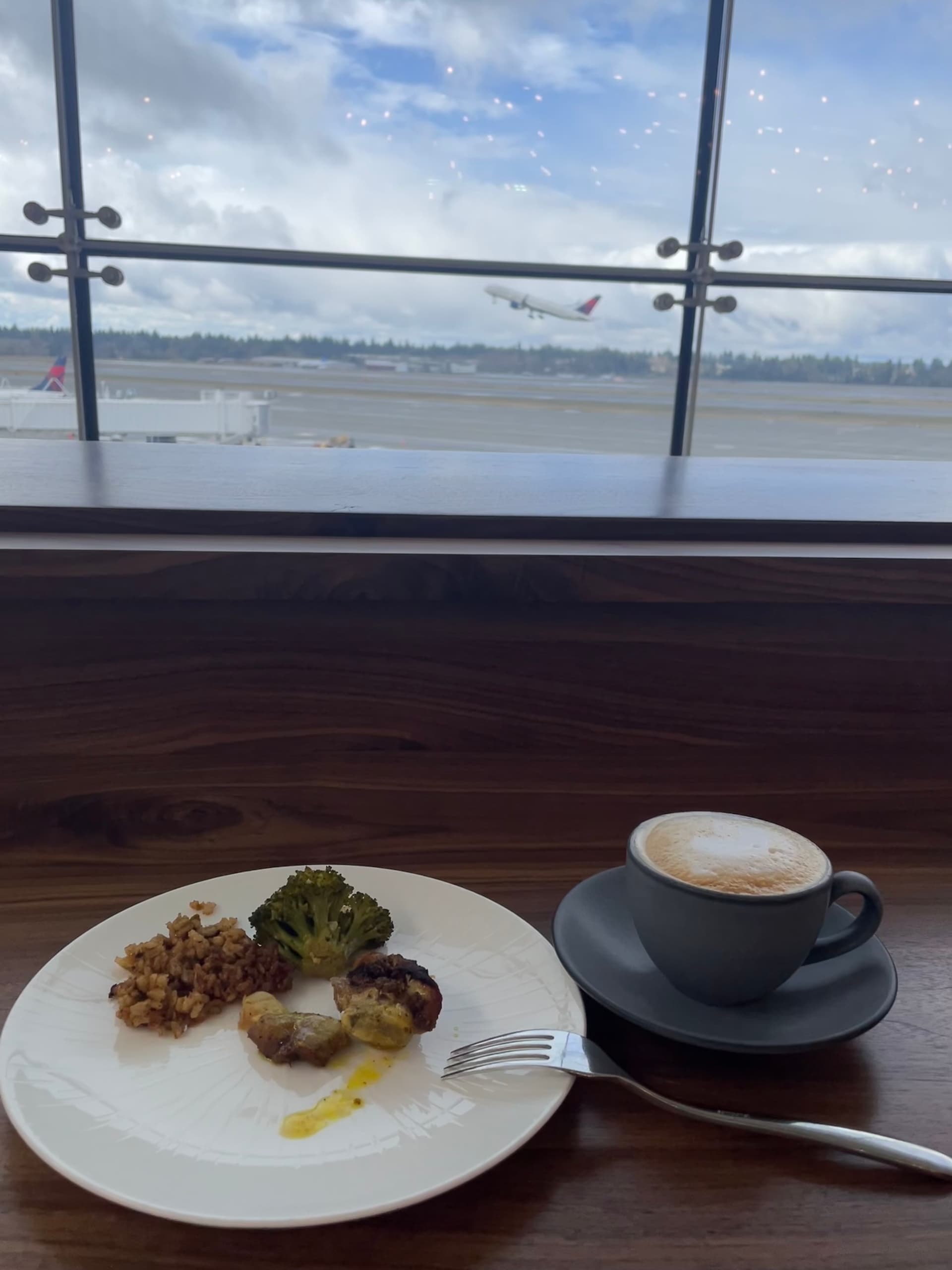 下午1:30起飞的JL67。西雅图作为AS DL大本营,自然没有JL自己的休息室。当时alaska刚加入oneworld联盟不久, 研究了一番我们发现可以去alaska的休息室。