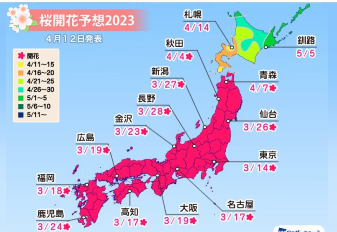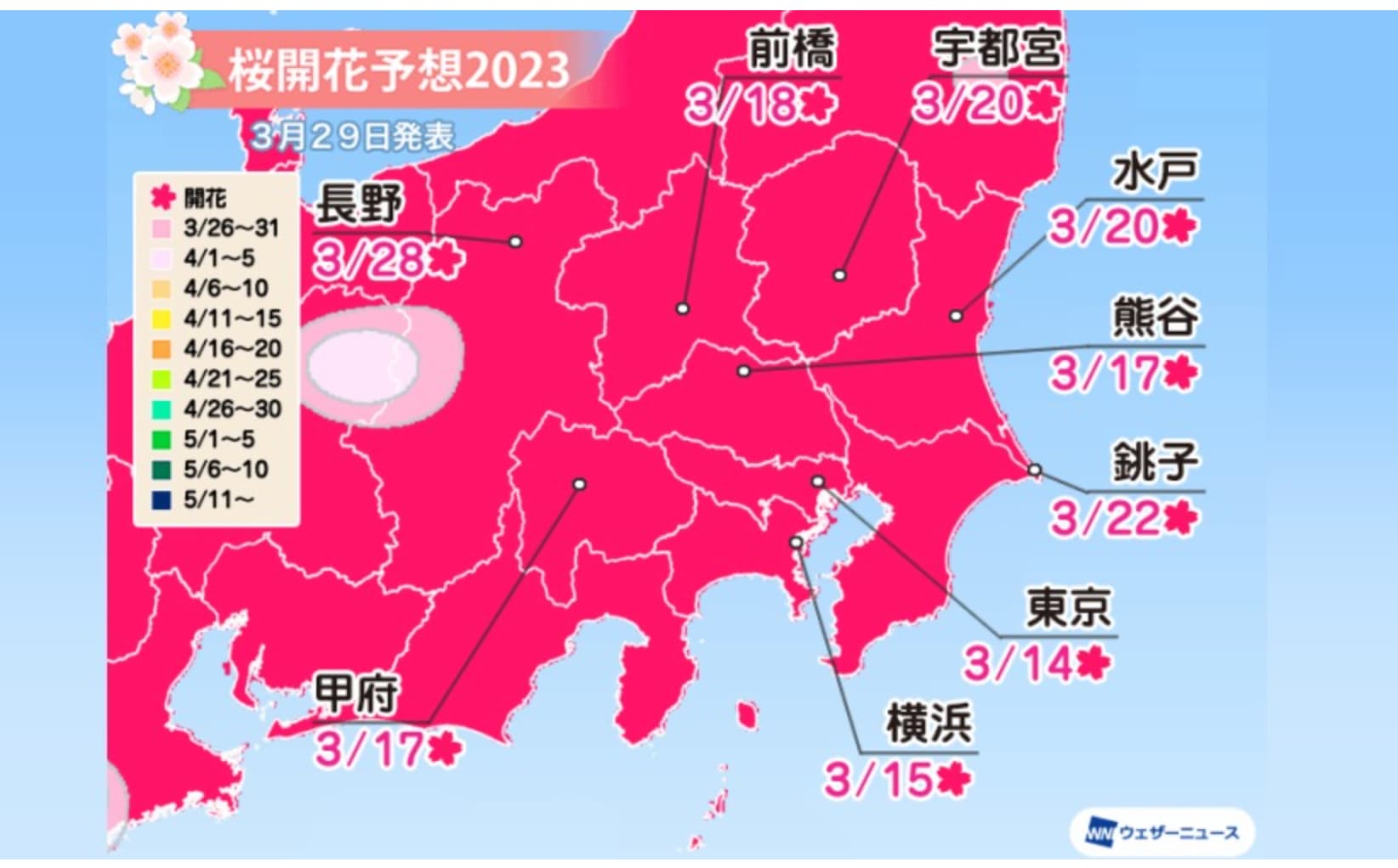因为此次出行时提前两周决定,所以三月底订票后就在关注樱花预想,希望能遇到peak。