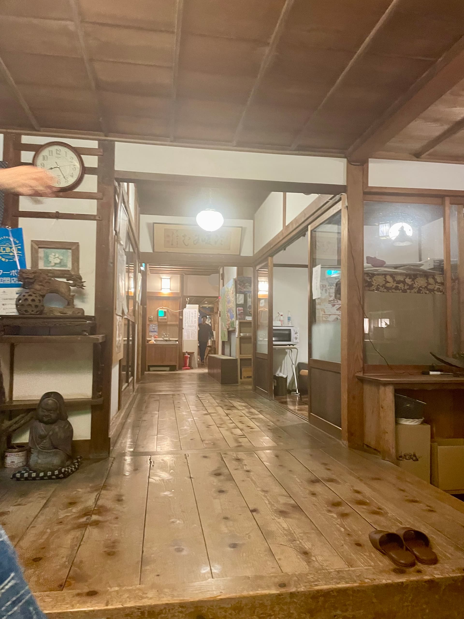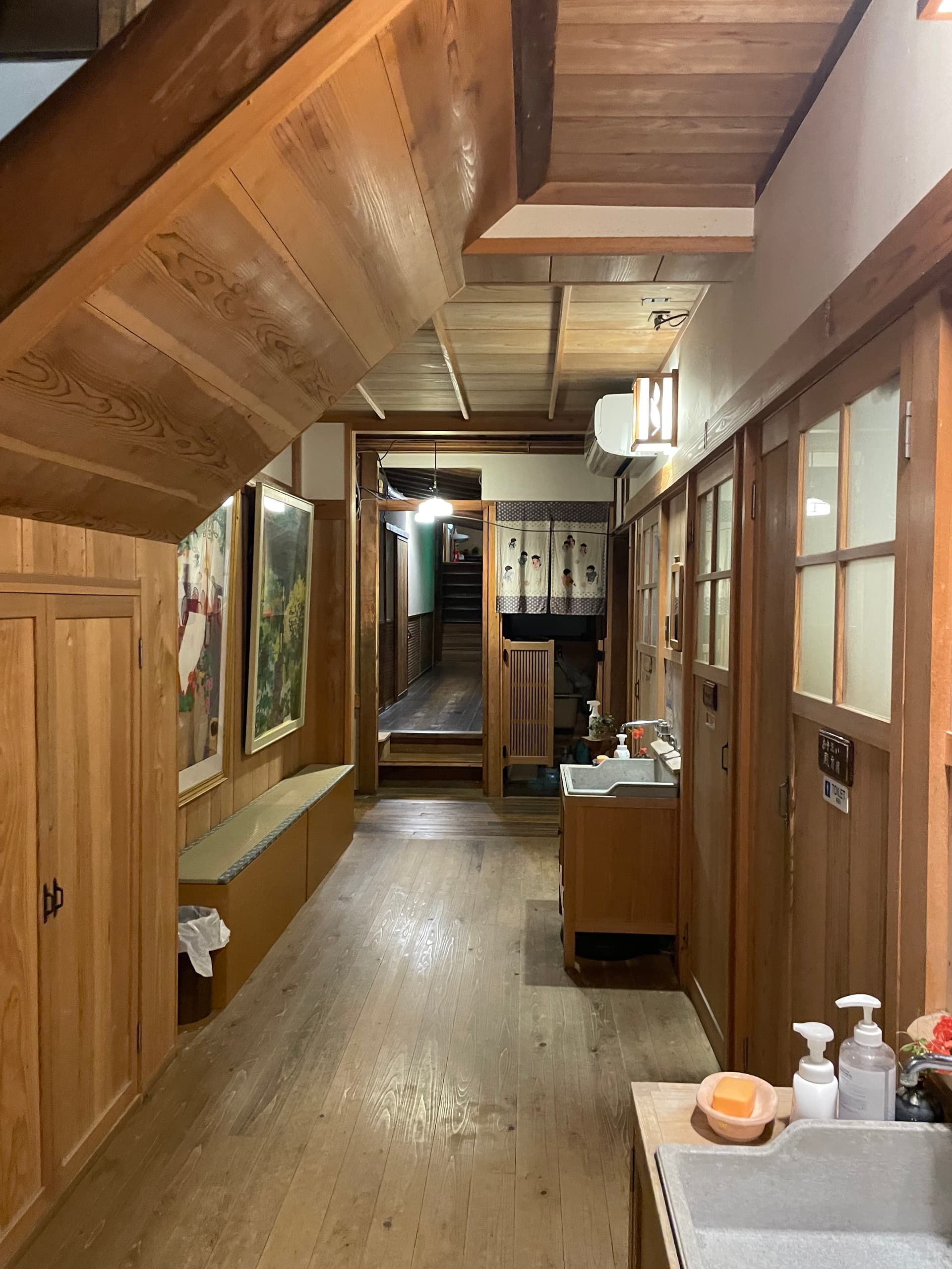 金谷旅馆,1867 年开业,大浴场作为日本最大的全桧木浴场而闻名。其宏伟程度是无与伦比的。不仅浴缸,墙壁和天花板都是木头的!许多人都被丝柏舒适光滑的质感所治愈。可以住宿也可以日归(1000jpy)。我们在旅馆住宿了一晚,深层体验了这个古老的旅馆。