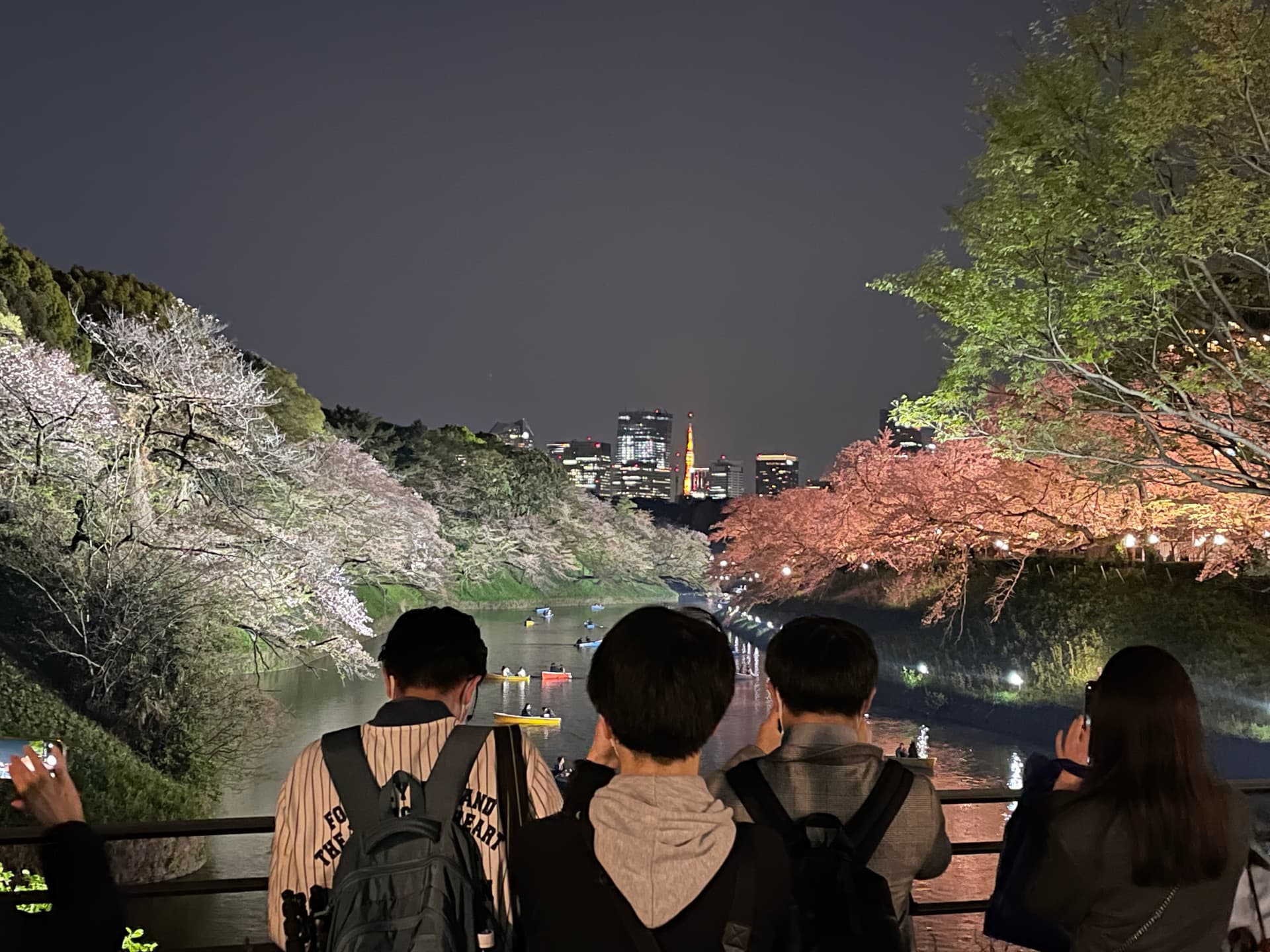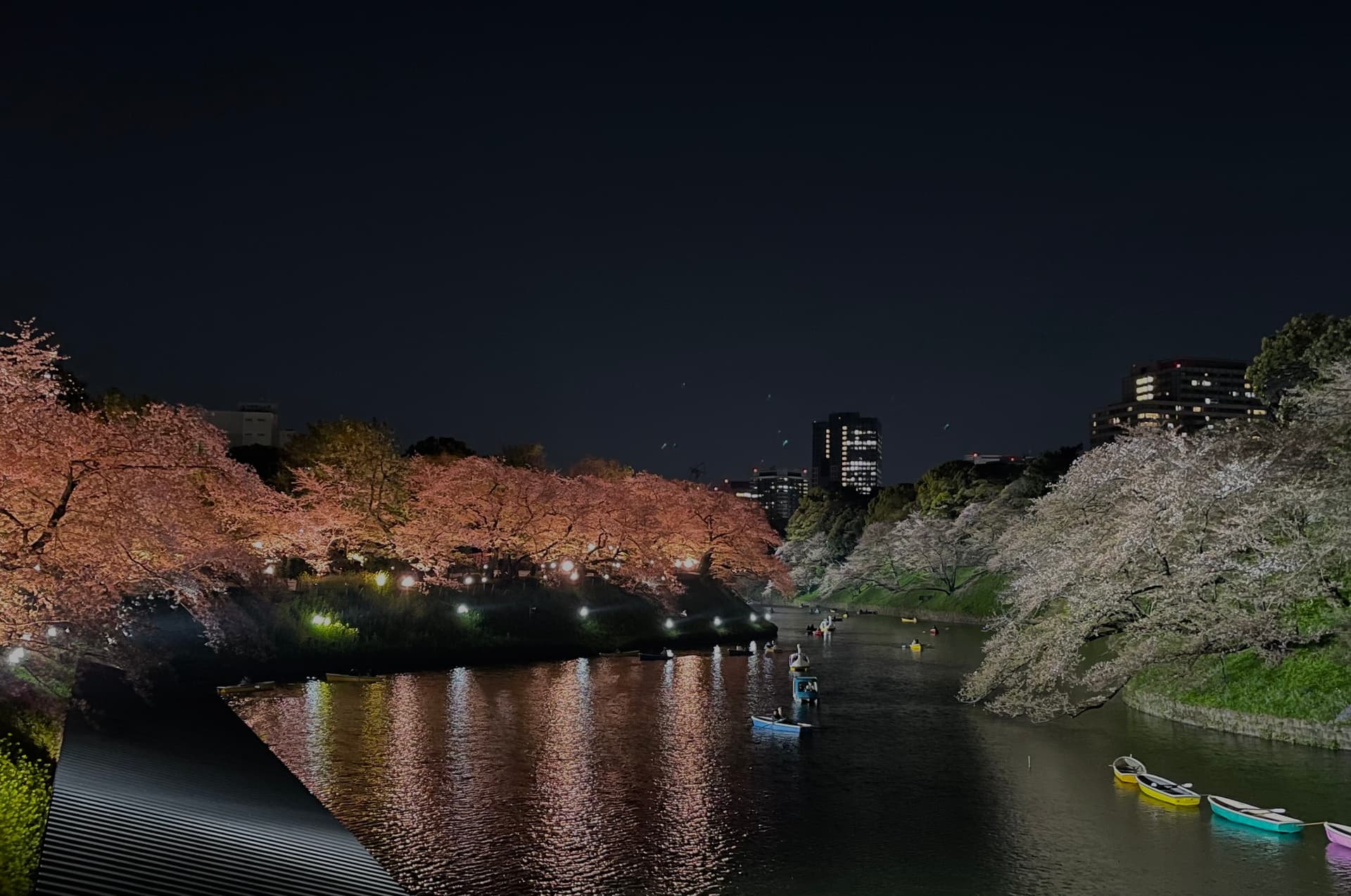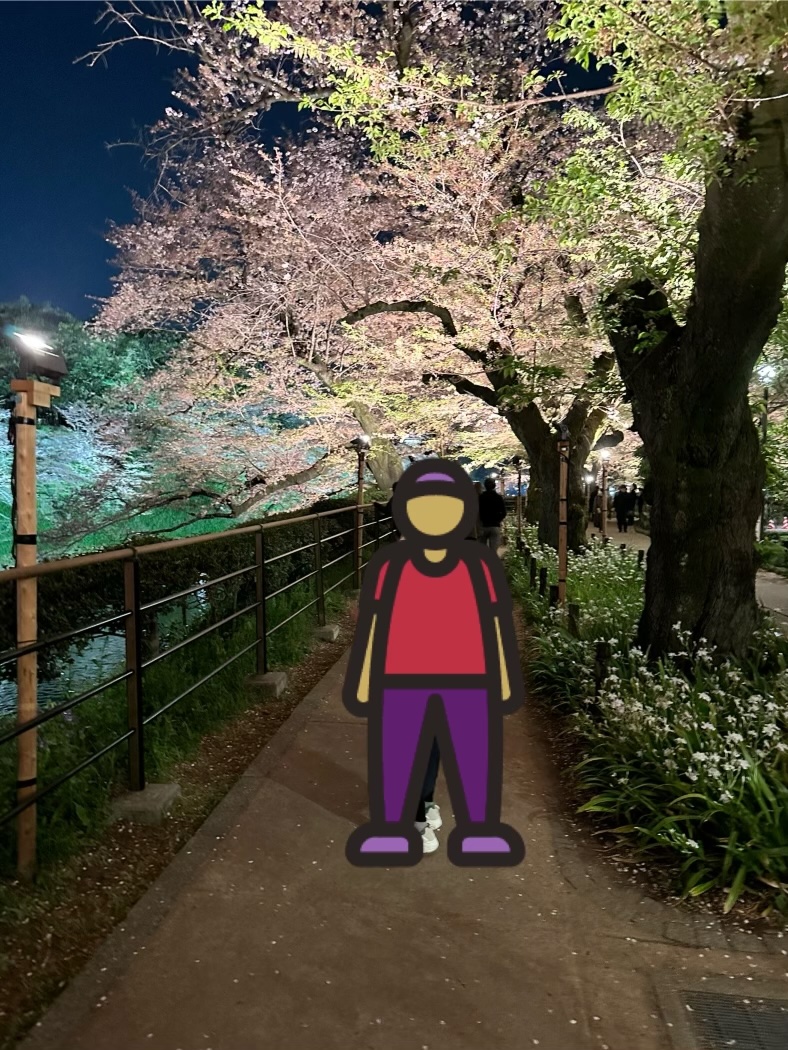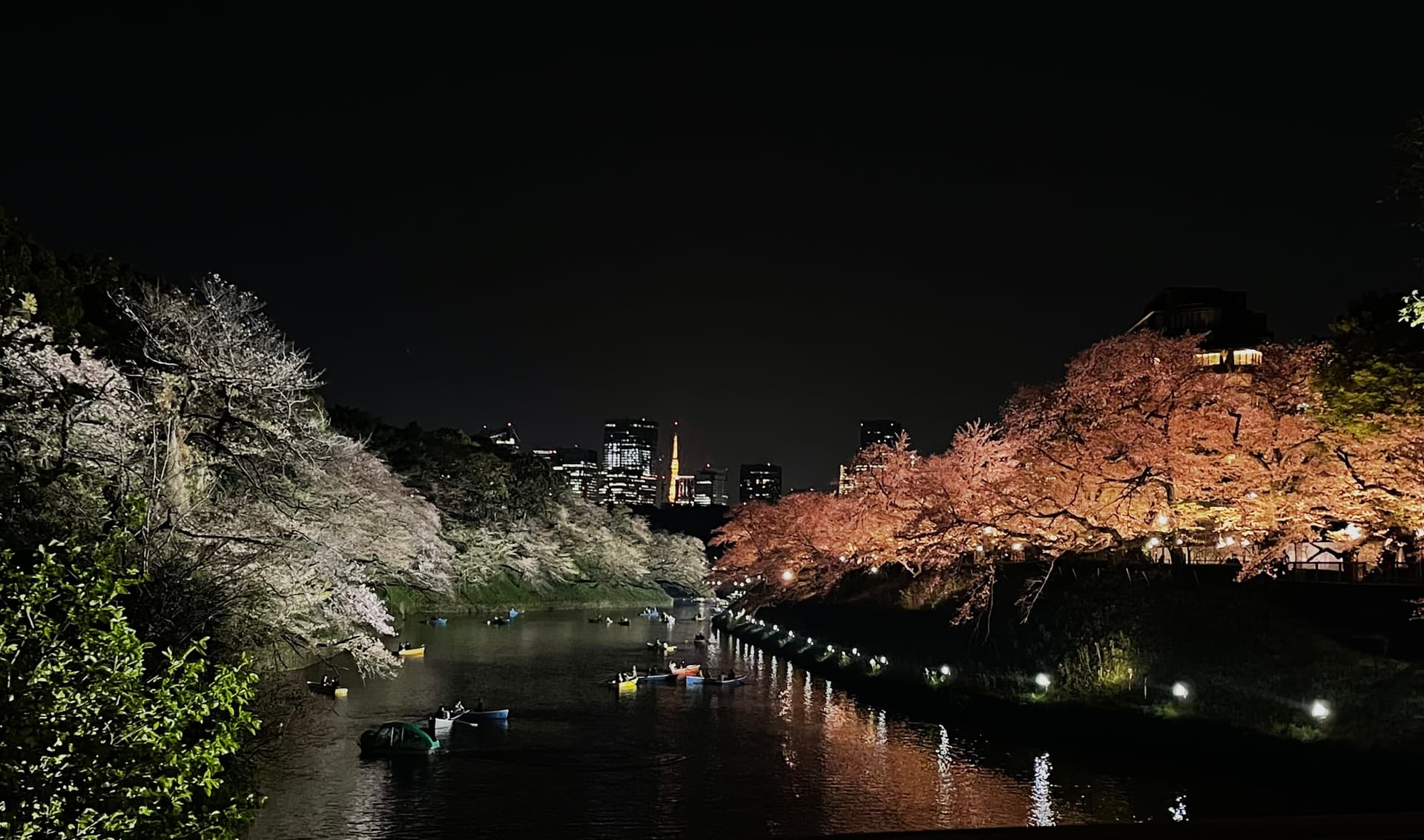 3:40 pm到达NRT,海关排队一个小时。出来做Skyliner到达上野。和朋友会面,坐朋友车前往千鳥ヶ淵公園。到公园已经天黑,7pm左右。