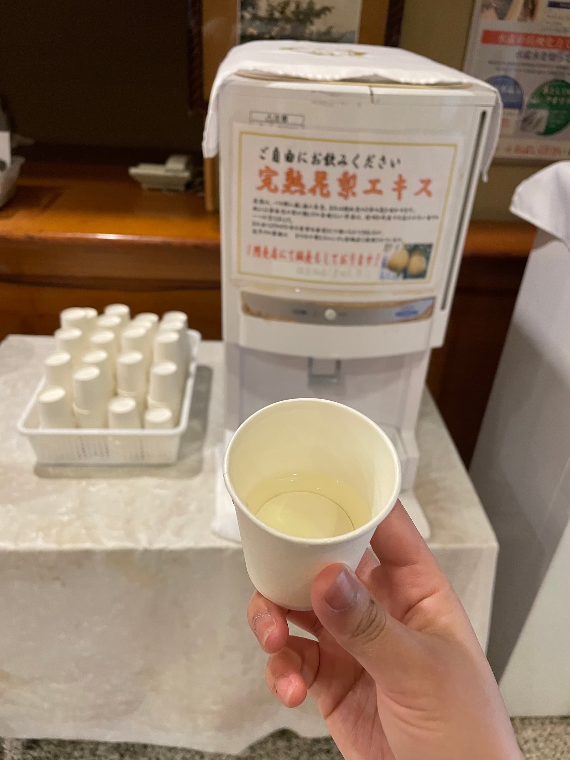 泡汤完门口有冰镇梨子汁,泡完汤和一杯神仙享受。如果像我一样连喝三杯就更爽了。查了一下南雪梨也算是长野的特产。
