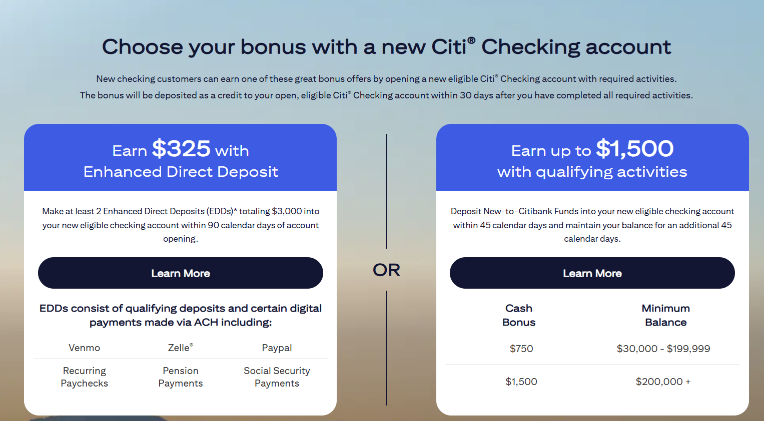 So long as you have not owned a Citibank checking account in the last 365 days, meet Tax Requirements, and are at least 18 years old, you can apply to participate in the Welcome Checking Cash Bonus Offer.