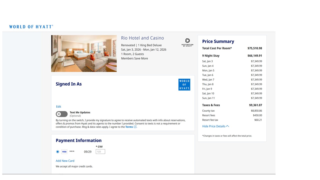 顺便抱怨一下 Hyatt, 为什么 saved payment method 不存 cvv, 每次用积分定晚都要从binder 里找卡。