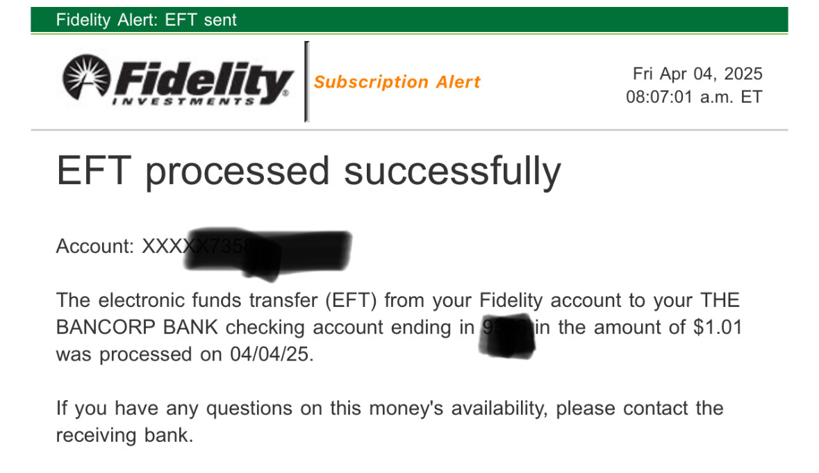 fidelity 连不上 因为bancorp 过不了RTV.. fidelity那边甚至都没办法确定bancorp的账户里类型 和 holder information。2025年还能听到这种理由 我感觉很费解。。