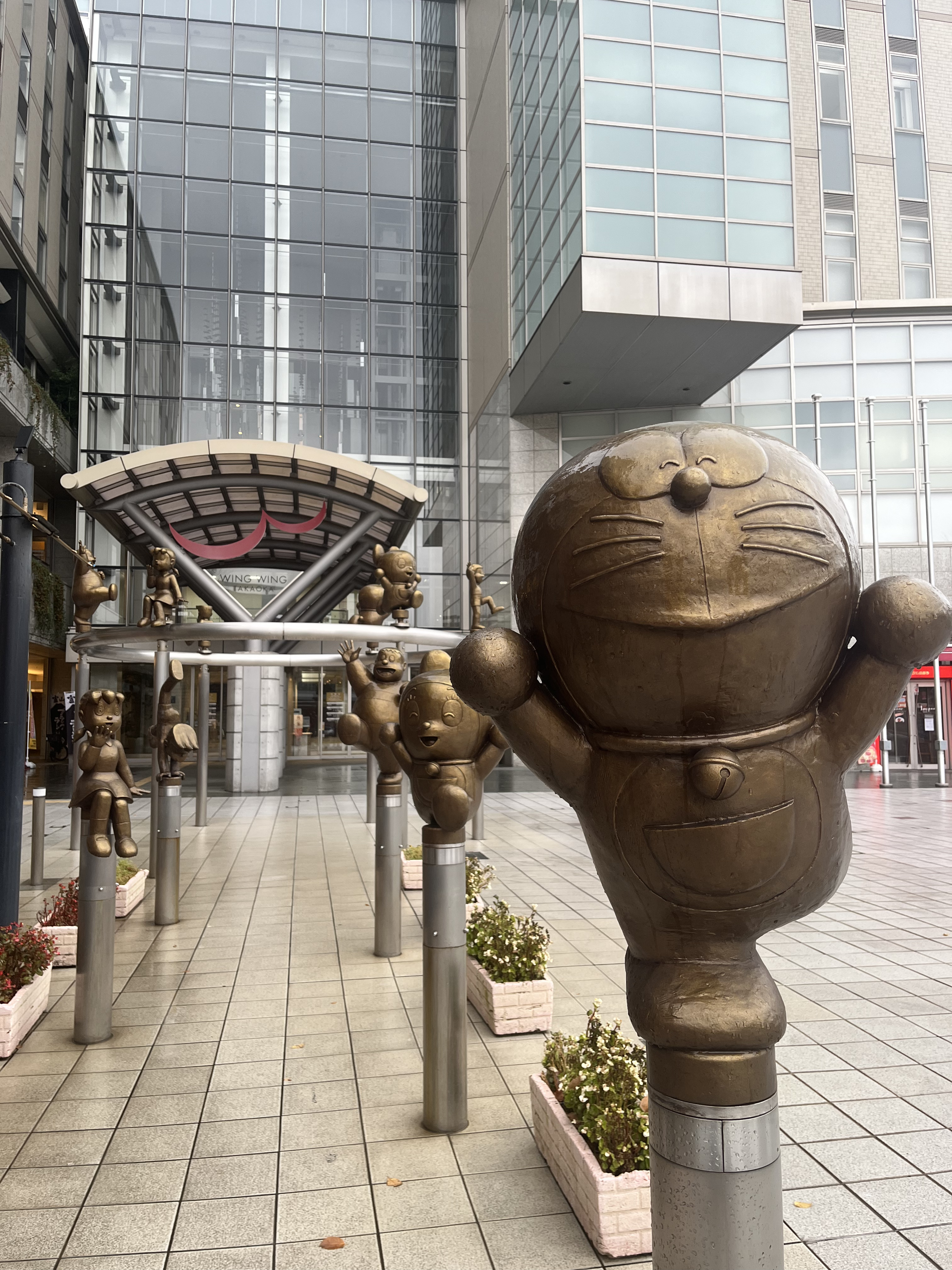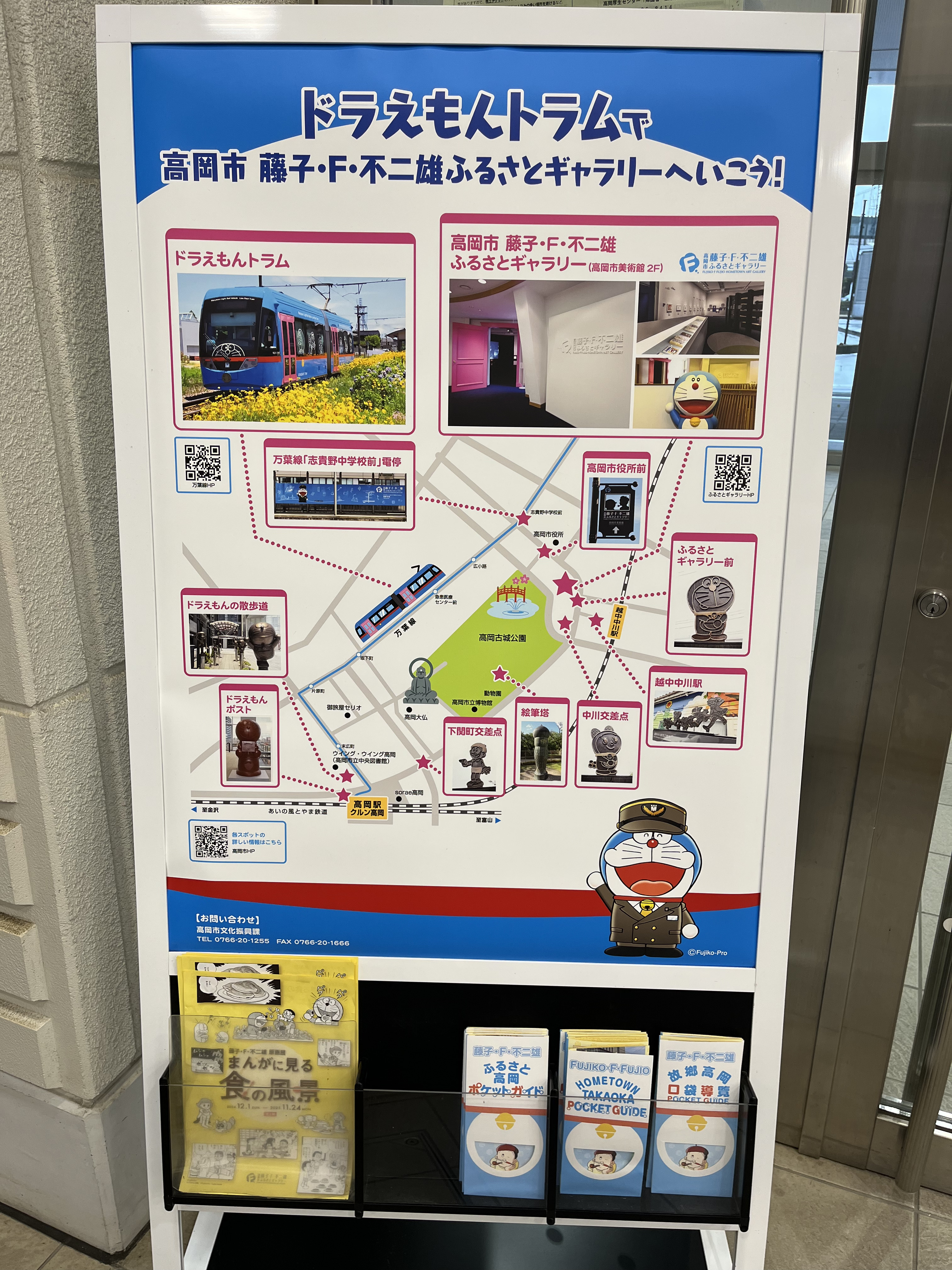 由于去雨晴海岸只有一条冰见线,间隔时间很长。于是在站附近逛了逛。高冈是哆啦A梦作者 藤子·F·不二雄 的家乡,所以这里有个哆啦A梦博物馆,附近哆啦A梦元素也很多。