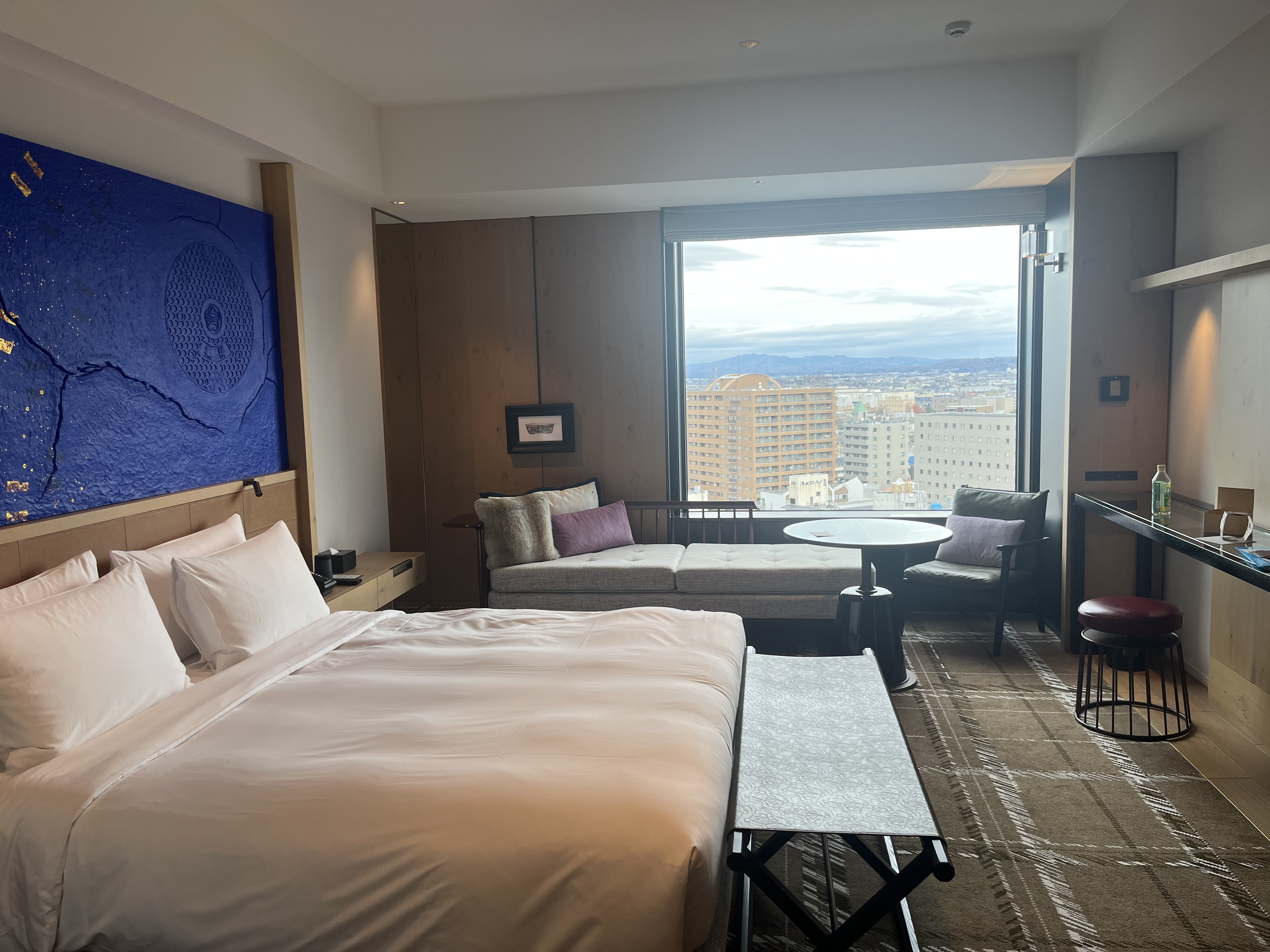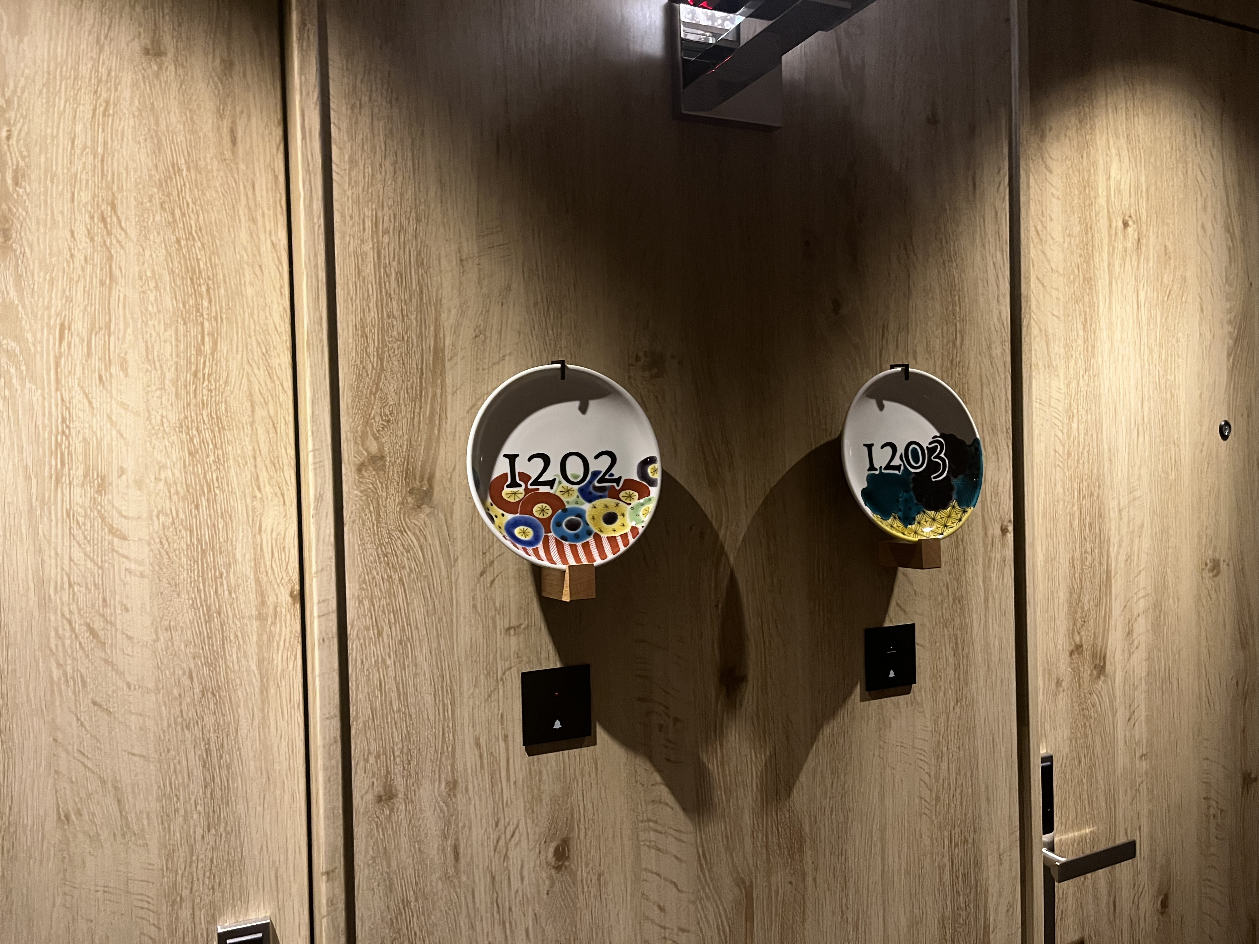 lz选择了住在Hyatt Centric Kanazawa,出了金泽站步行5分钟就能到(含税刚100出头)整个酒店设计都挺用心的。房间内和公共区都有很多的艺术品。门牌号是用瓷盘子做的,房间里还有两只挺可爱的小兔子玩偶