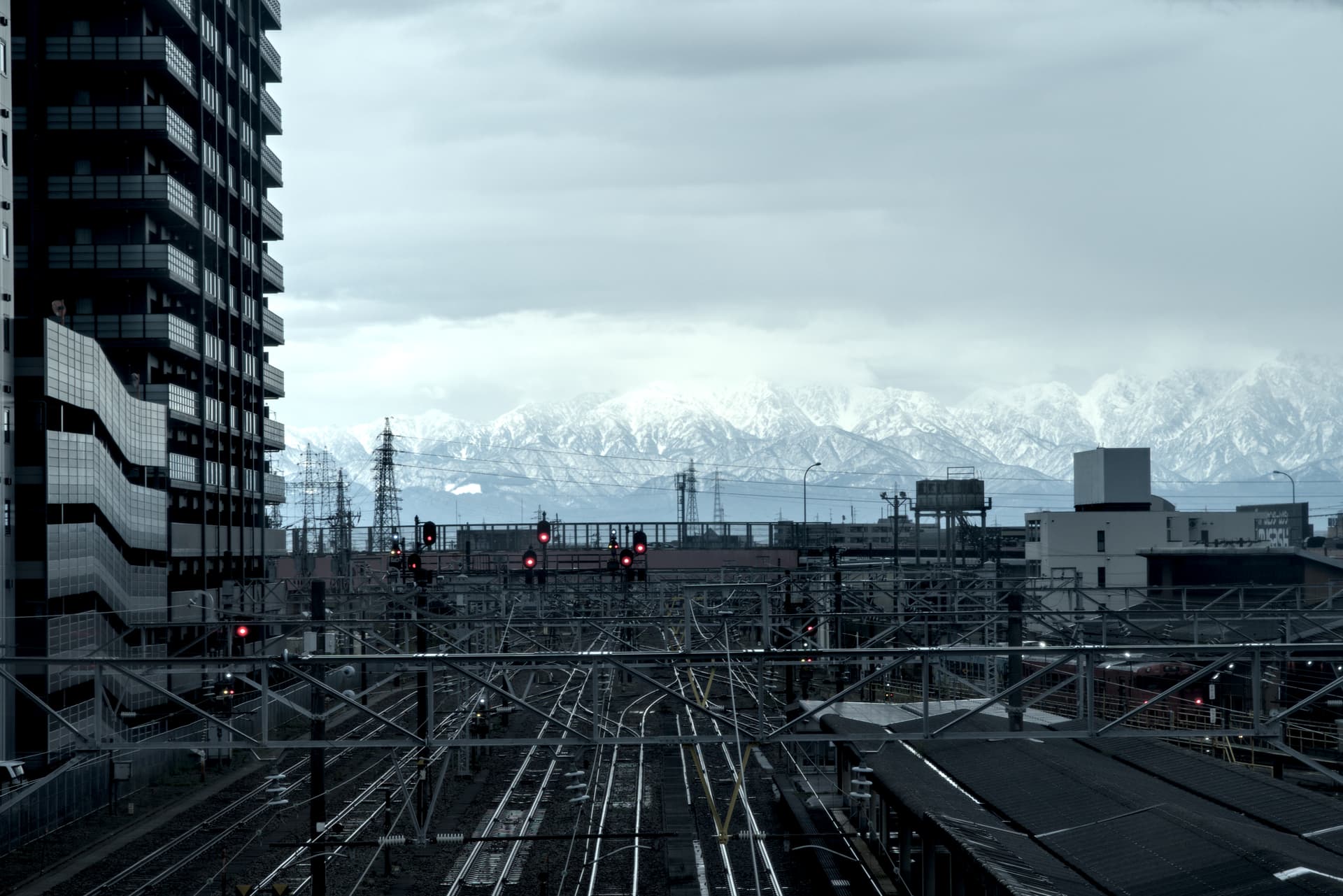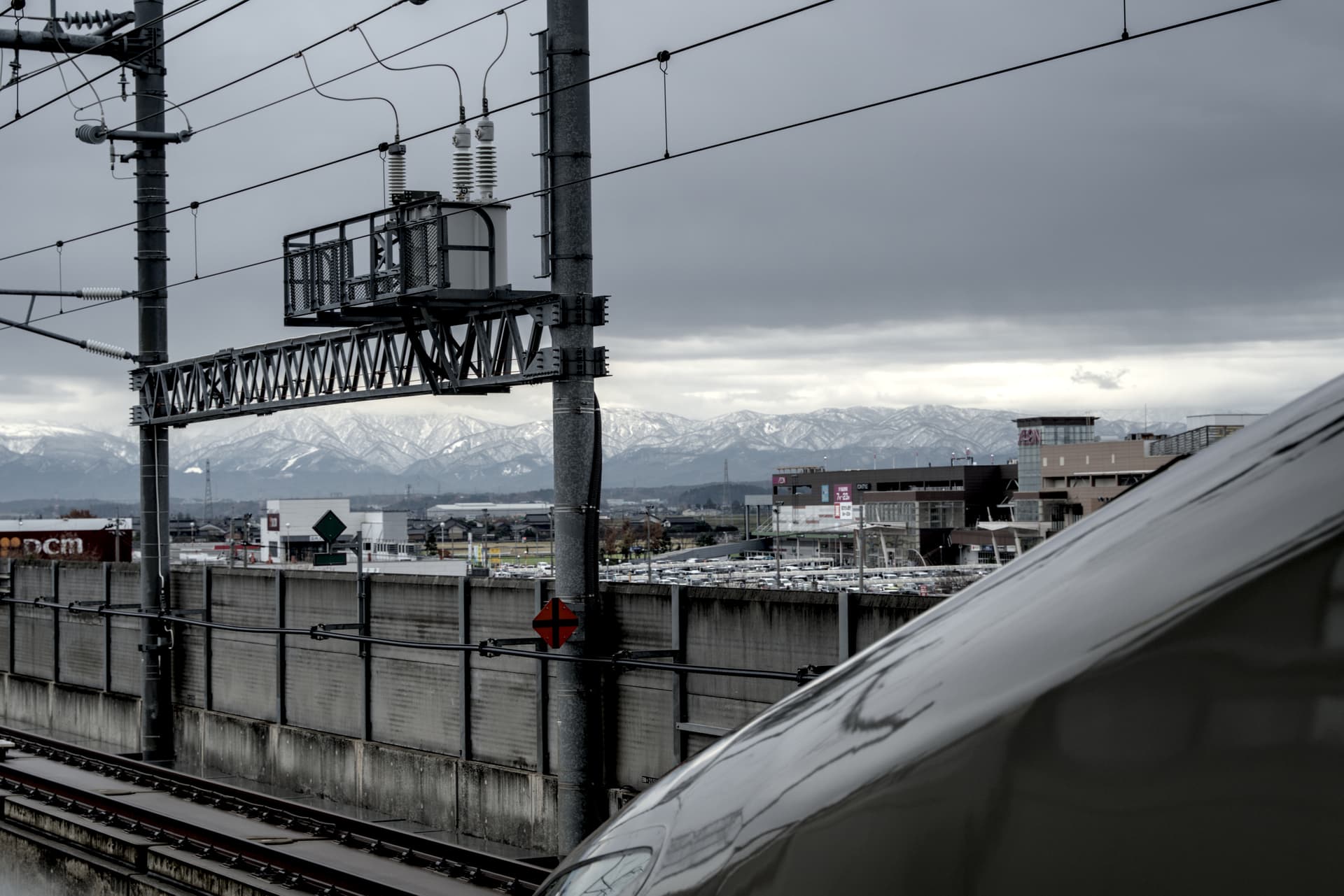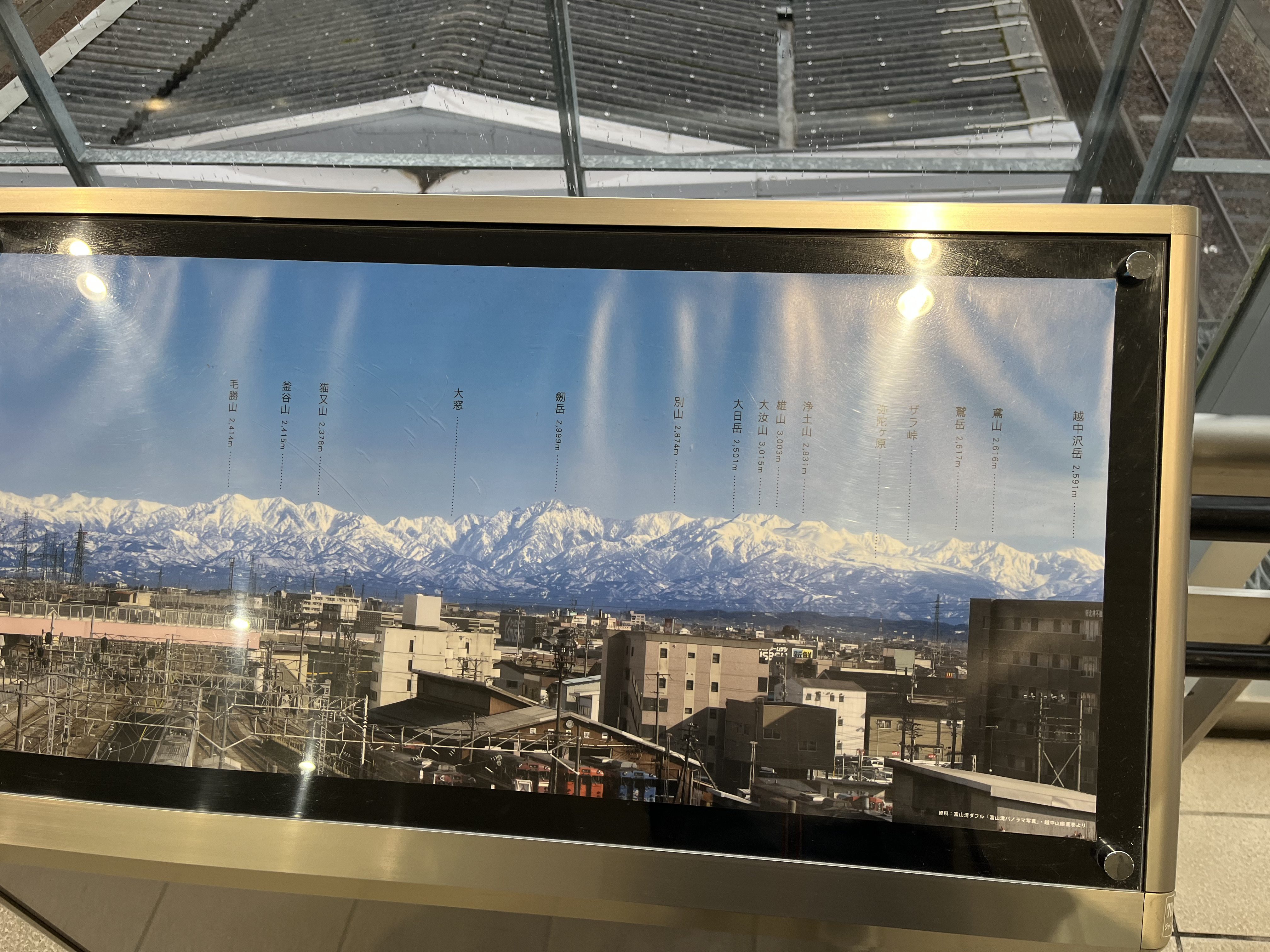 下午先坐新干线到了新高冈站,在站台就能清晰的看到远处的立山连峰