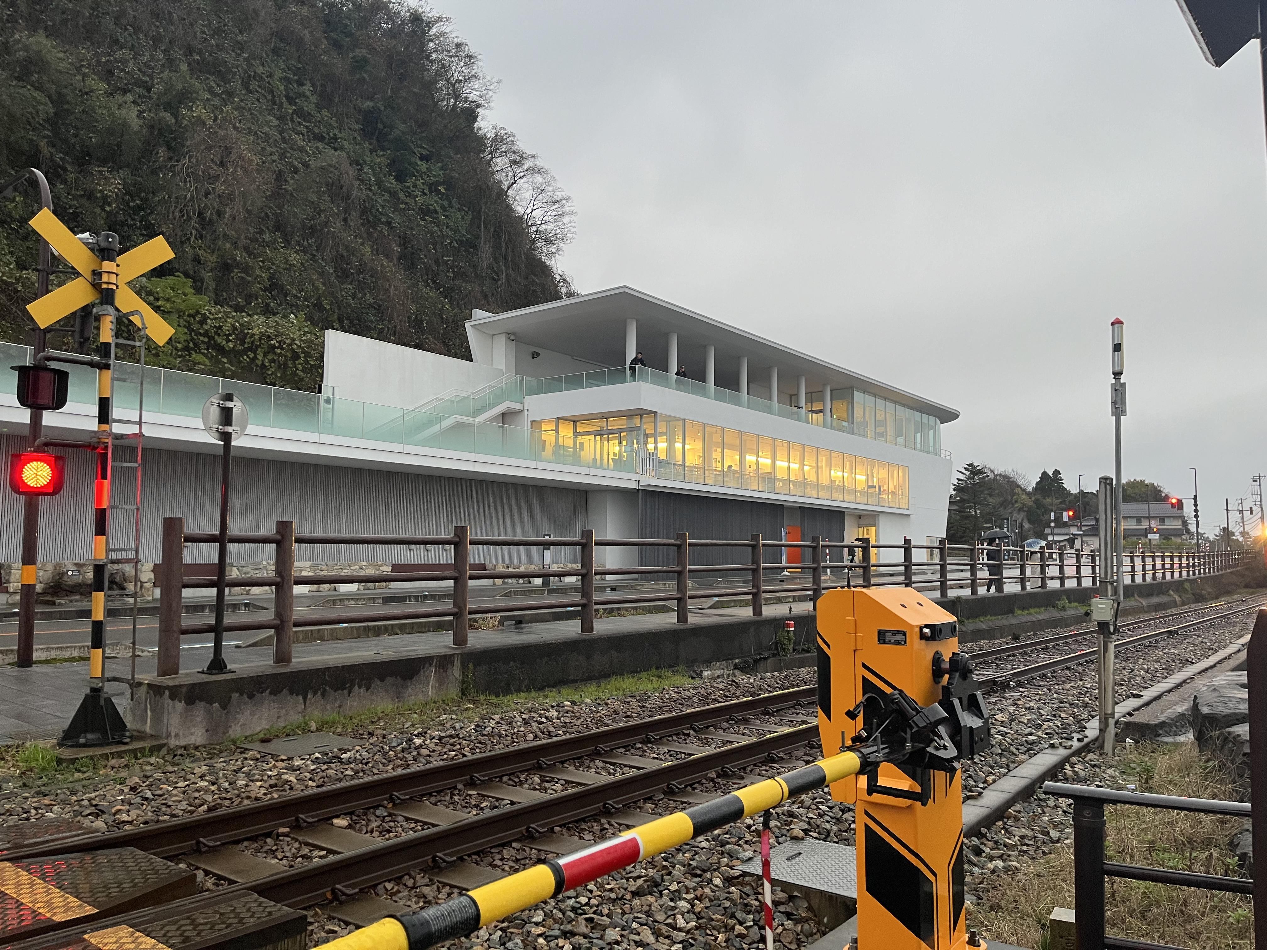 打算直奔雨晴海岸。需要坐成端线去高冈站。如果是天晴,在高冈站的站厅里能看到如下画面