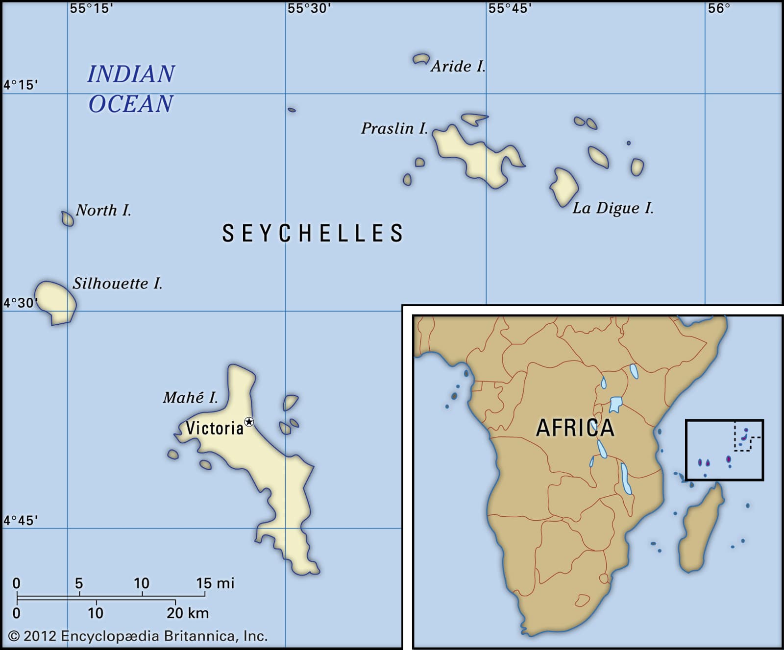 塞席爾位於馬達加斯加島東北方約1000公里處, 面積455平方公里, 人口約9萬人, 人口密度每平方公里186人, 經濟發達, 是非洲國家中唯一的高收入經濟體, 主要來源為農漁業及旅遊業. 全國由40個花崗岩島和45個珊瑚島組成. 主要島嶼為馬埃島(Mahe), 普拉蘭島(Praslin), 拉迪格島(La Digue).