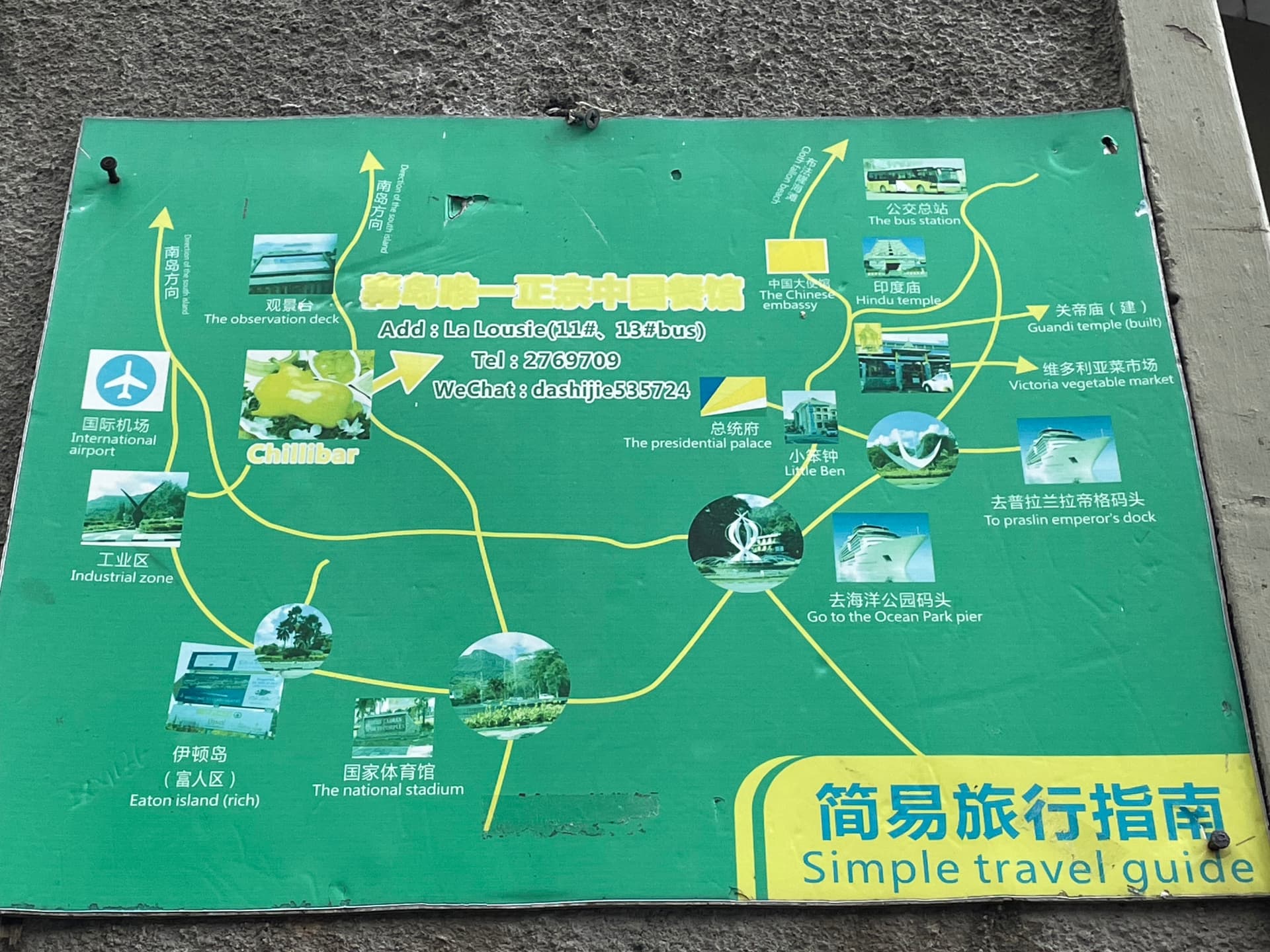 貼在路邊中國人製作維多利亞簡易旅行指南, feat. 塞島唯一正宗中國餐館Chilli Bar and Grill