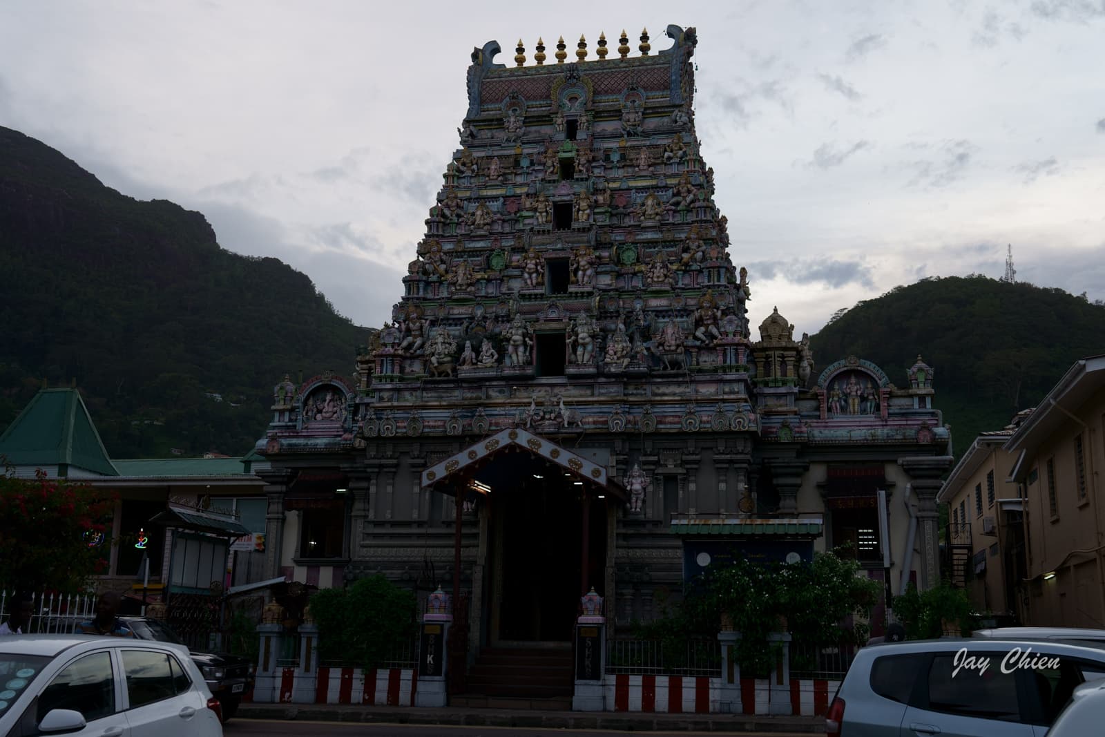 Arul Mihu Navasakthi Vinayagar Temple, 印度廟與天主教堂並立, 可以看出塞席爾的文化融合