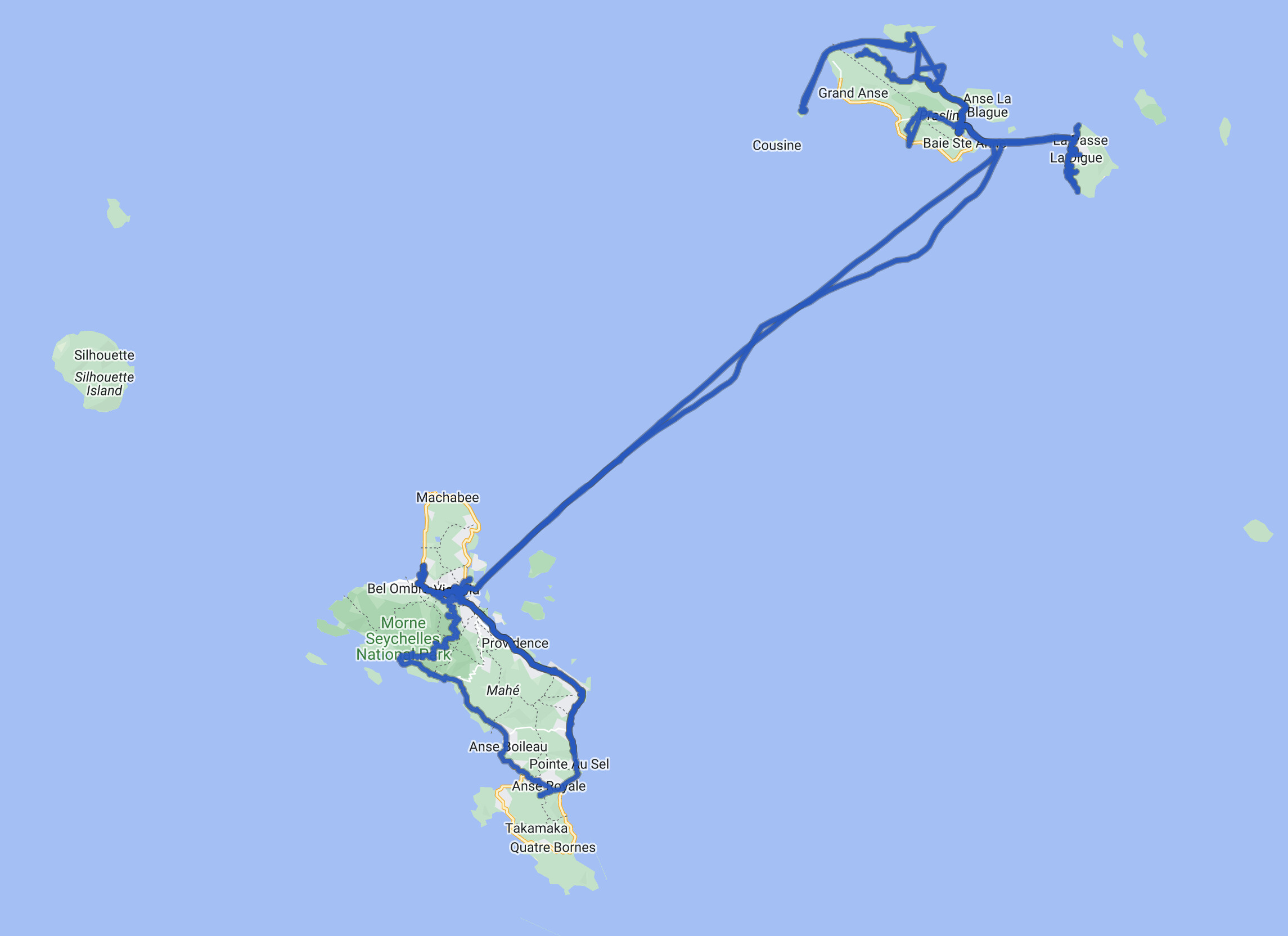 主要三島嶼之間的交通則可乘坐快船或直升機, 馬埃島到普拉蘭島快船75分鐘, 普拉蘭島到拉迪格島30分. 趕時間或是容易暈船的也有飛機跟直升機可選. 實際坐船之後感覺是出海之後還是很晃, 擔心的可以事前吃暈船藥.